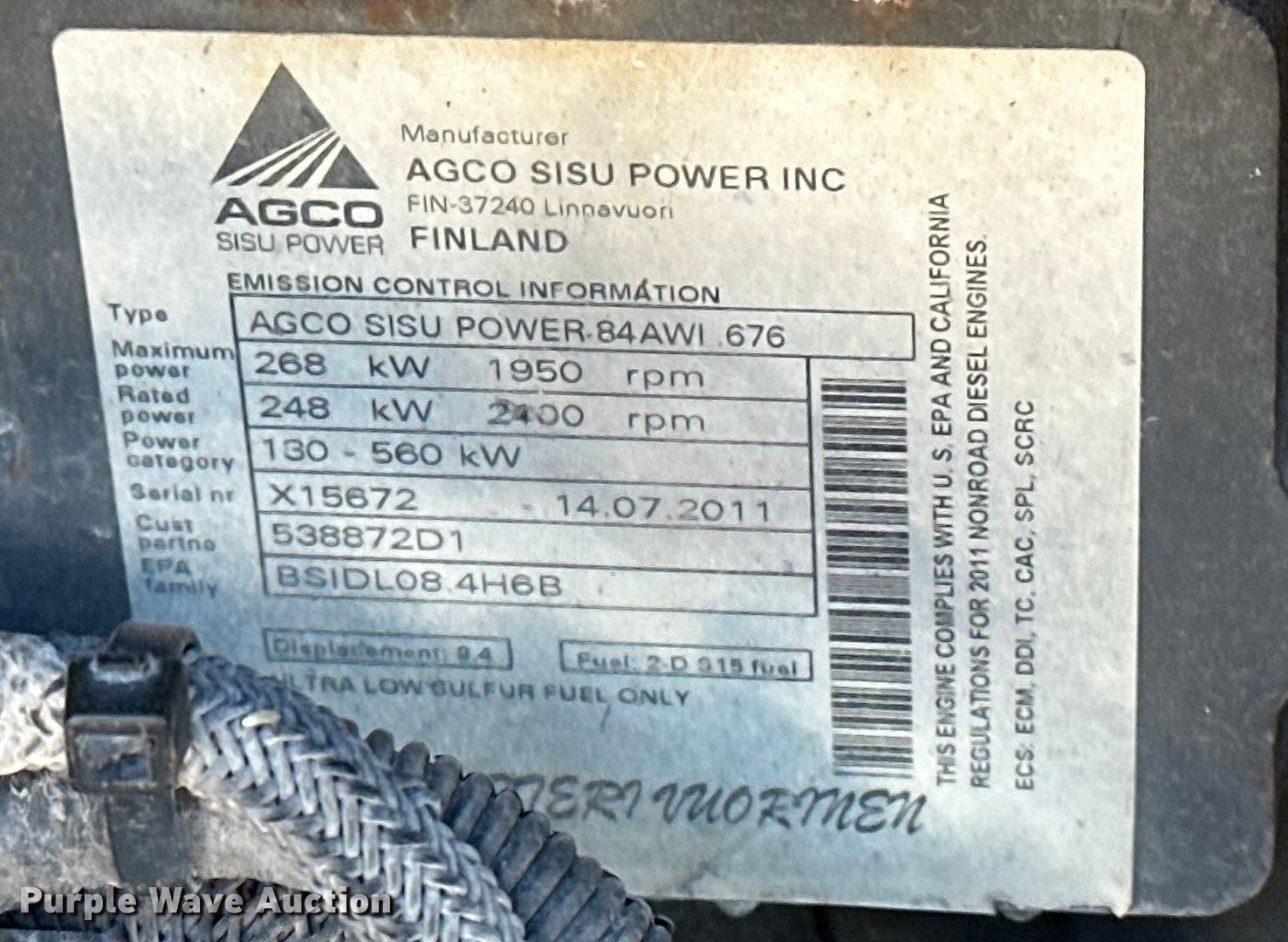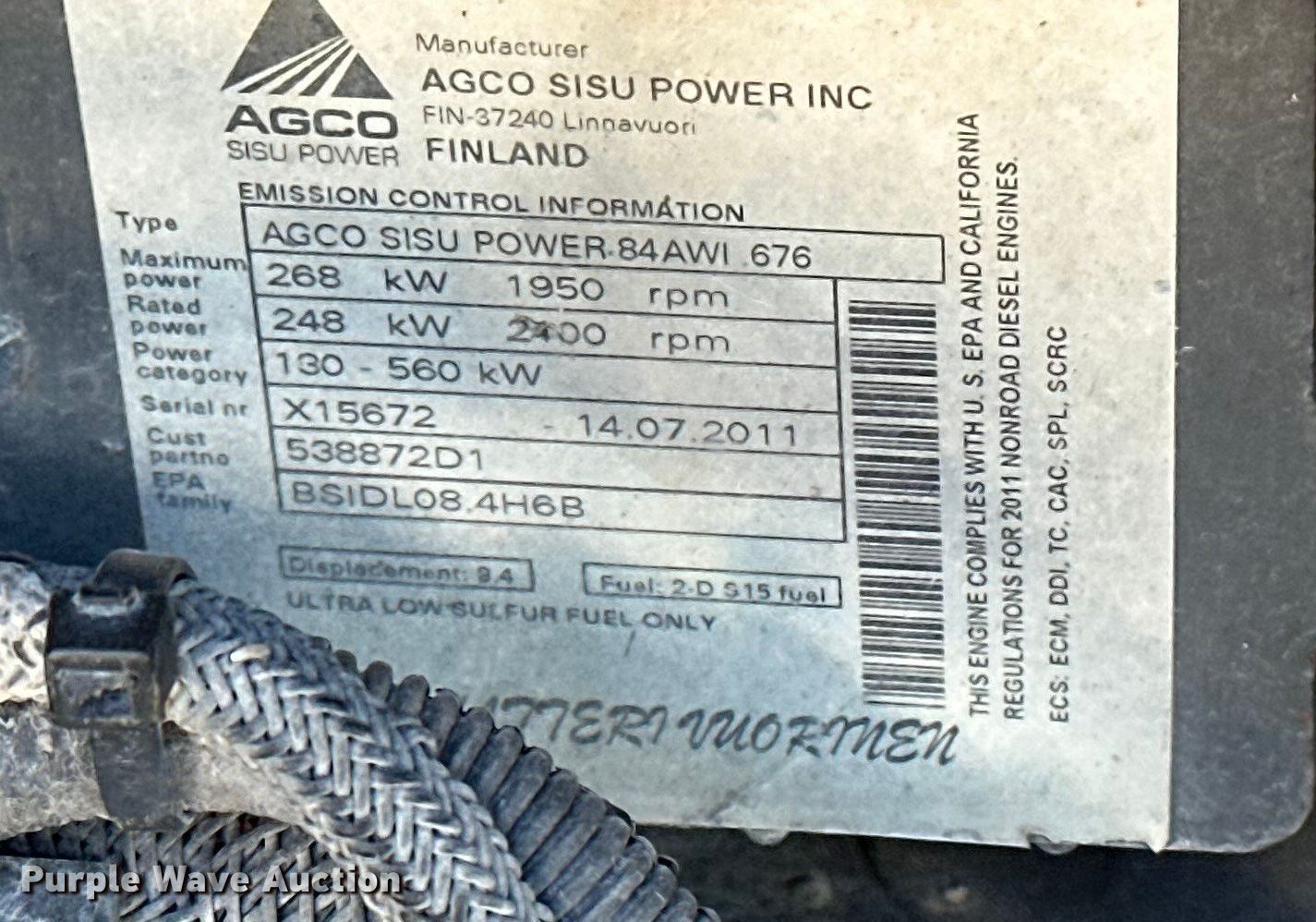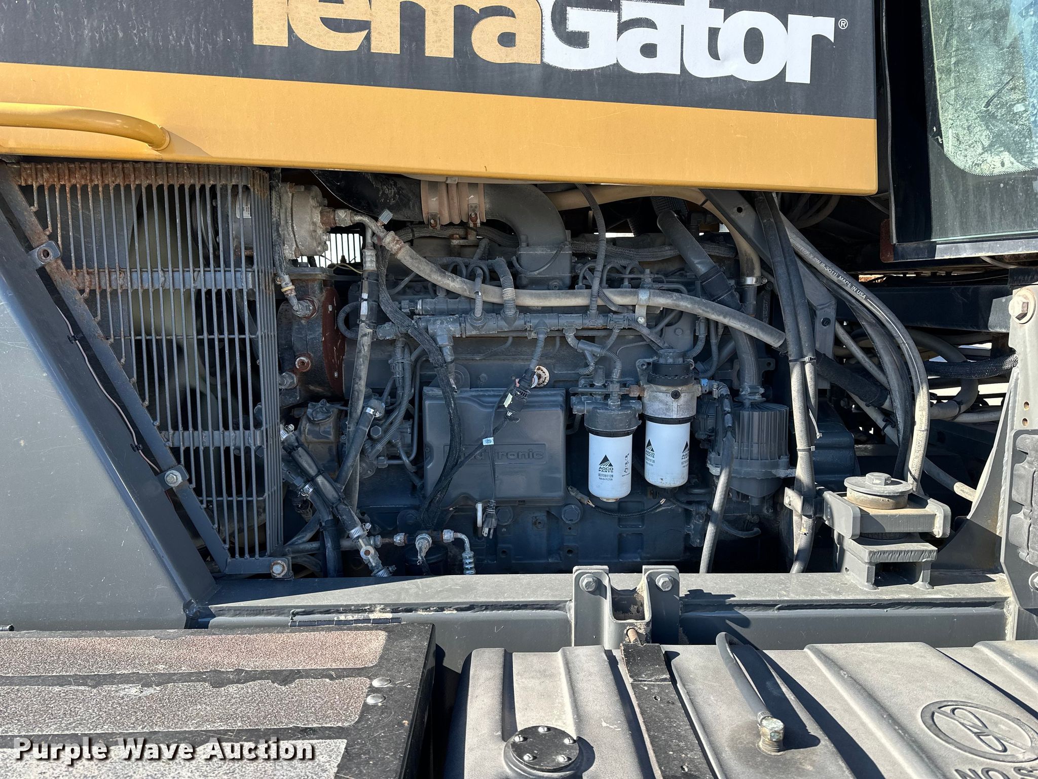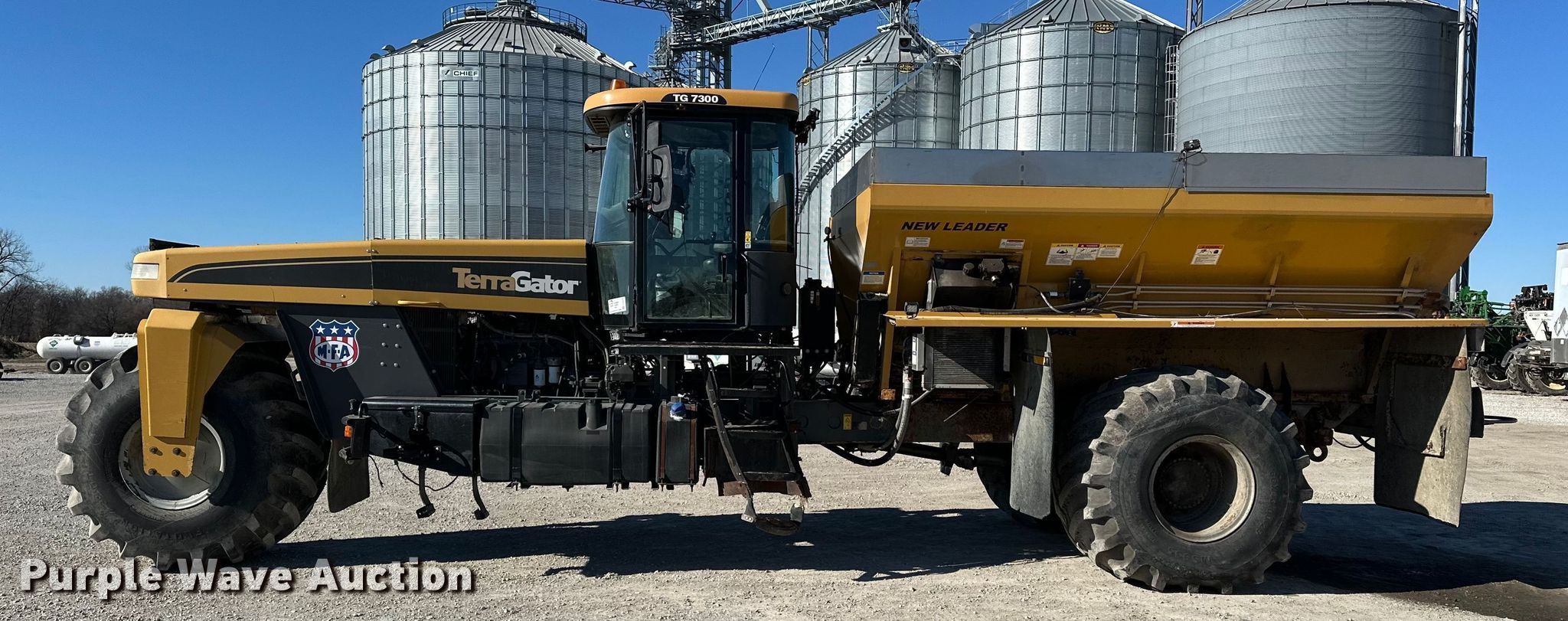 2012 TerraGator TG7300 spreader. Engine hours: 6,173 on meter, Hours: Unknown, Serial: AGCA7300CCN8N1067. Engine AGCO, Serial: X15672, Displacement: 9.4L, Cylinders: 6, Fuel type: Diesel. Transmission Hydrostatic. Operators station AC, Heat, Rotary beacon. Features Dry fertilizer spreader bed New Leader L4000G4, Serial: 131263, Length: 14', Stainless steel, Dual spinners, Conveyor belt, Electronics Auto steer, Ground radar, Lower conveyor width: 24", Upper conveyor width: 18". Tires Size: 66x43.00-25, Flotation tires. Notes Raven monitor not included, Warning indicator: Oil indicator, Fault Code, Windshield chipped or cracked, Cab control issues, does not operate bed, Hydraulic leak, Non-operational upper conveyor, Non-operational hour meter. MFA Inc. Albany, MO 64402