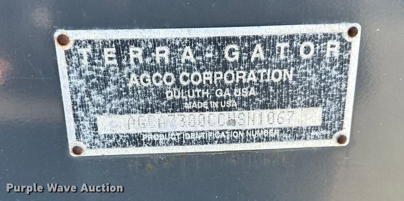 Purple Wave is selling a used Applicator Self Propelled in Missouri. This item is a 2012 TerraGator TG7300 spreader with the following: Engine hours: 6,173 on meter, Hours: Unknown, Serial: AGCA7300CCN8N1067