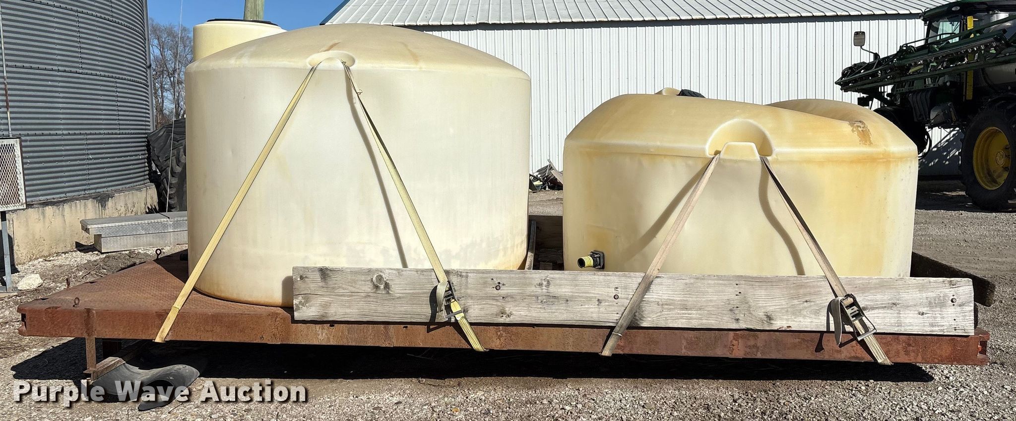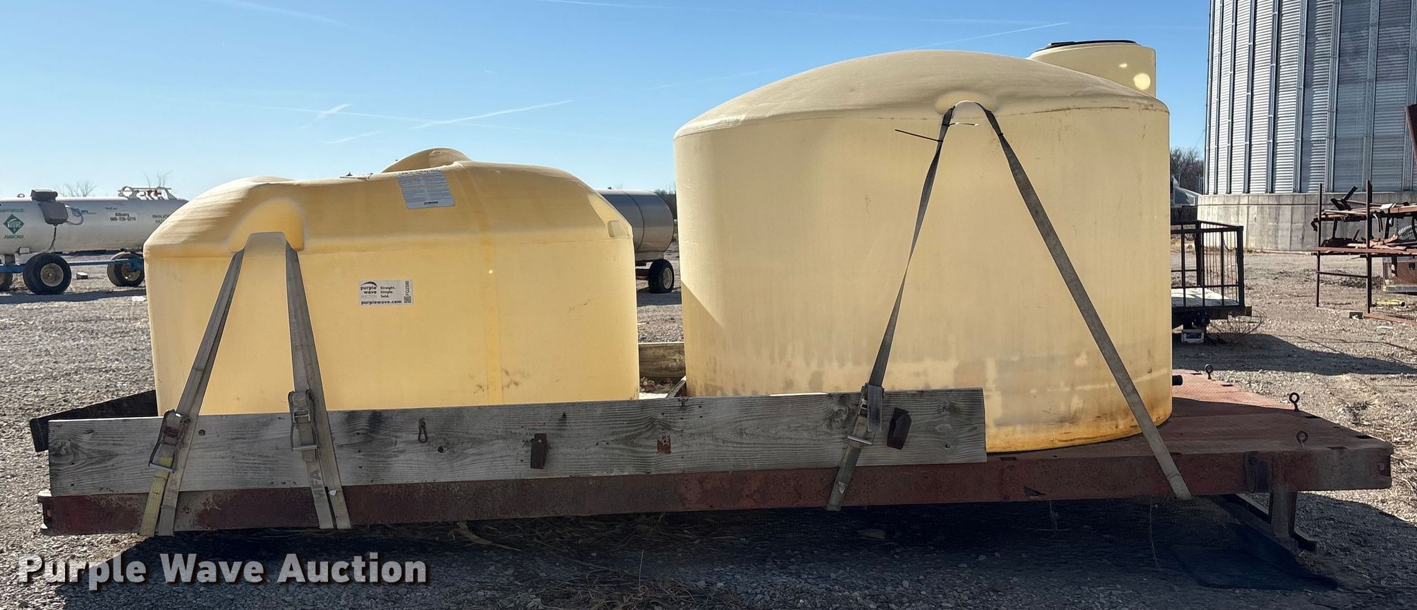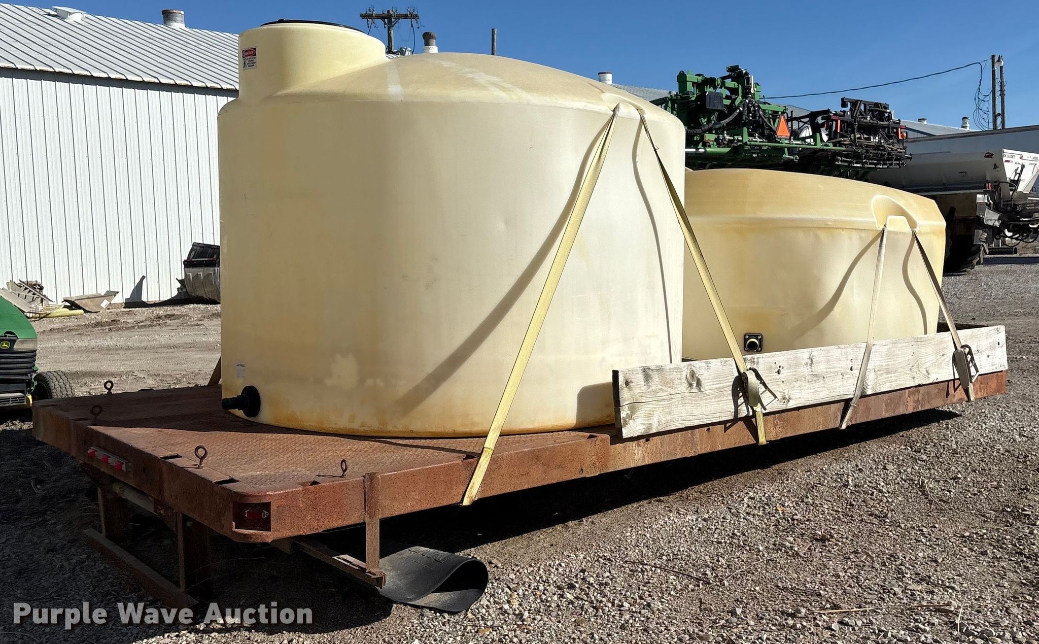 (2) poly tanks. Capacities: 1,000 gallons, 1,550 gallons, Flatbed 17' x 94". MFA Inc. Albany, MO 64402