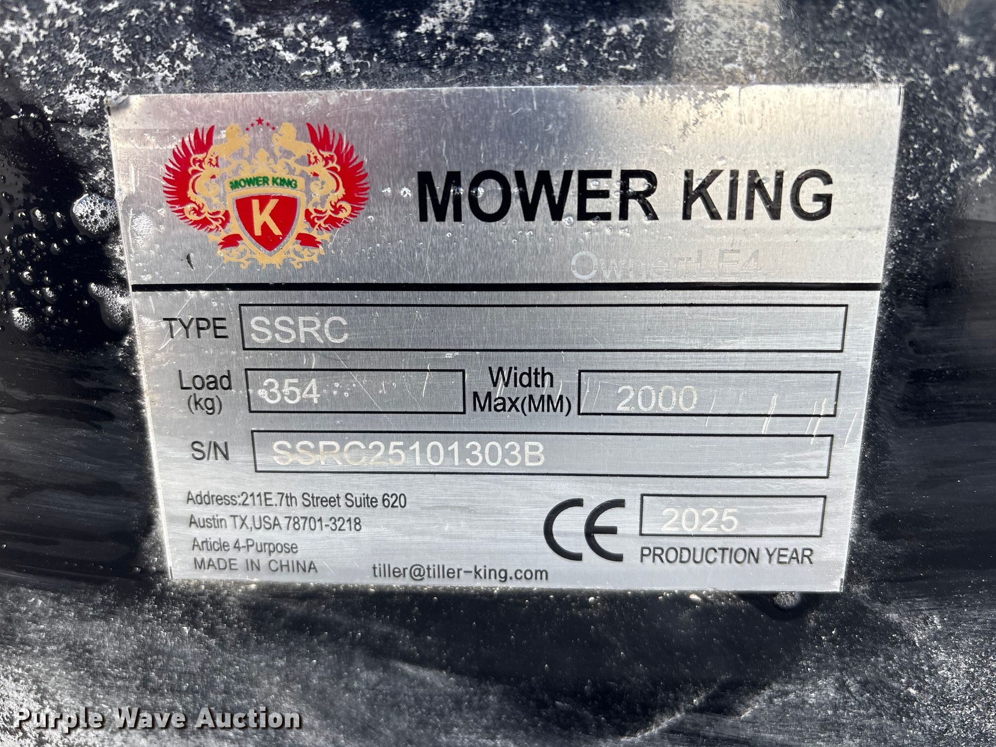 Purple Wave is selling a used Skid Steer Attach. in Nebraska. This item is a 2025 Mower King SSRC skid steer rotary mower with the following: Serial: SSRC25101303B, Width: 72"