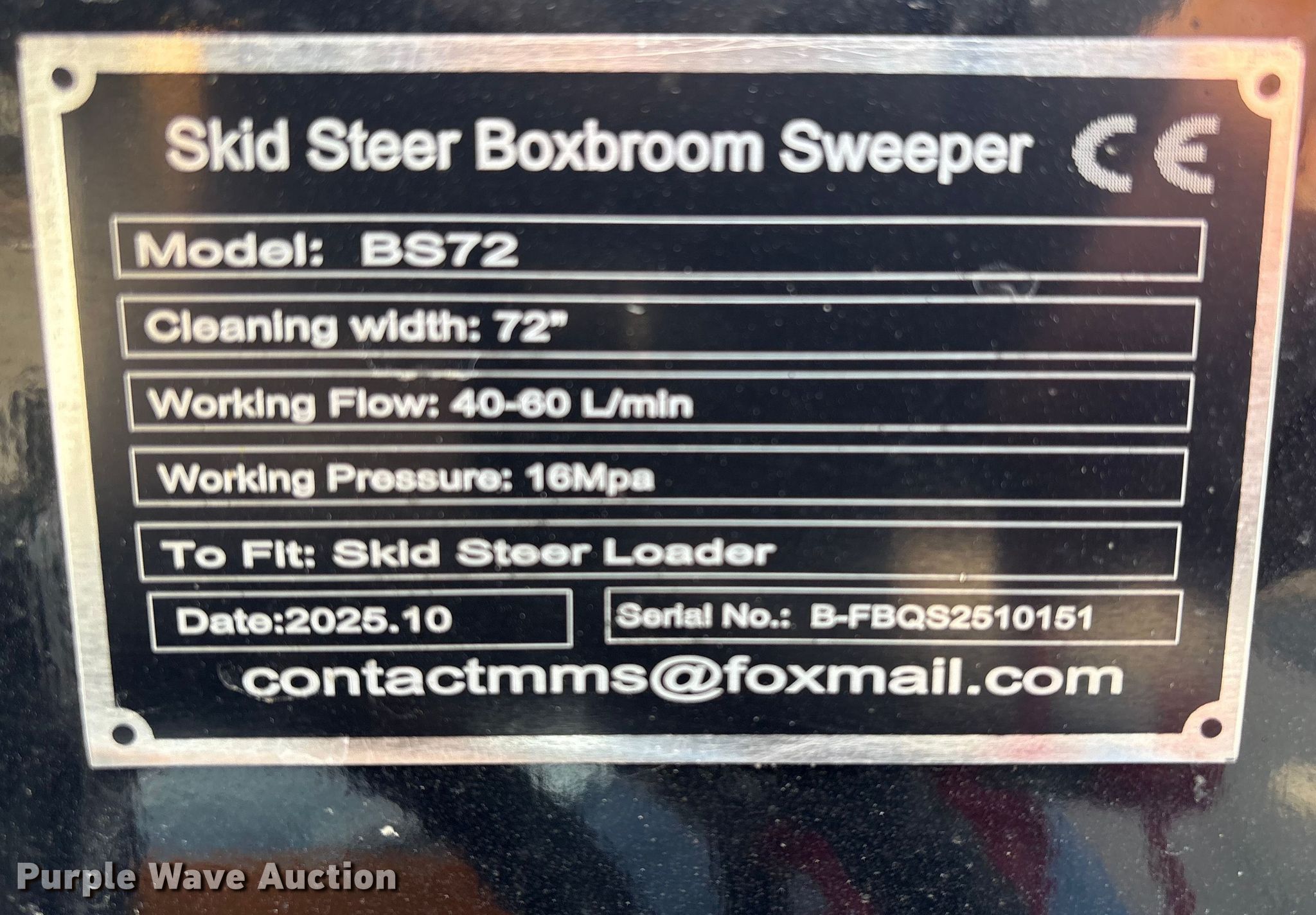 Purple Wave is selling a used Skid Steer Attach. in Nebraska. This item is a 2025 Giyi BS72 skid steer sweeper with the following: Serial: B-FBQS2510151, Width: 72"