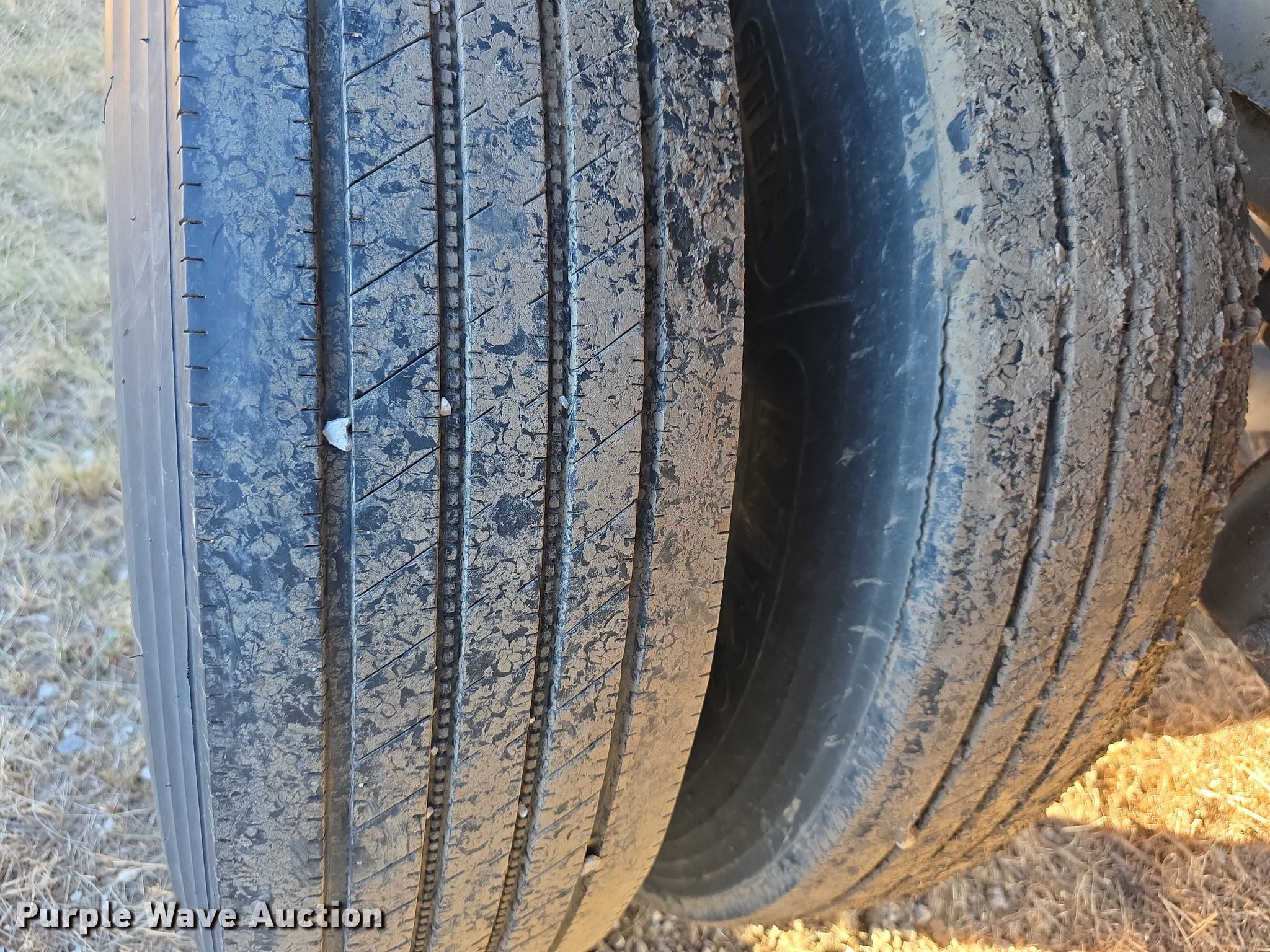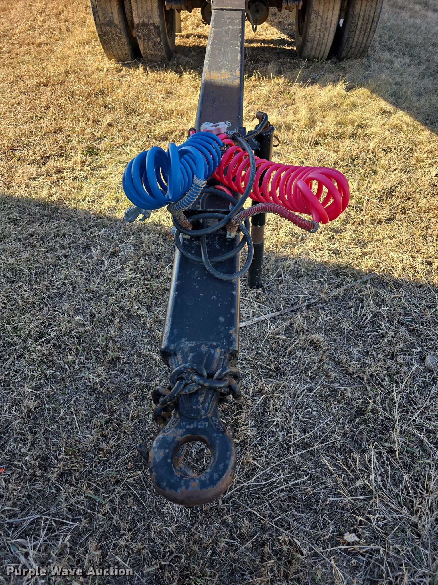 2024 Manufactured grain trailer. VIN: KS00400686. Dimensions Overall Length: 33' 6", Width: 8' 6", Body Length: 20', Side height: 6'. Features Capacity: 501 bushels, Body type: Steel, Hoppers: Single Trap gates: Manual, Roll tarp, Sight windows, Grain door. Chassis Hitch: Pintle, Landing gear: Single, Suspension: Spring, Brakes: Air, Axles: Spread. Tires Steel wheels, Size: 11R22.5. Kansas title. Title distribution may be delayed up to 14 days from verification of funds. CSV Farms. Wakefield, KS 67487