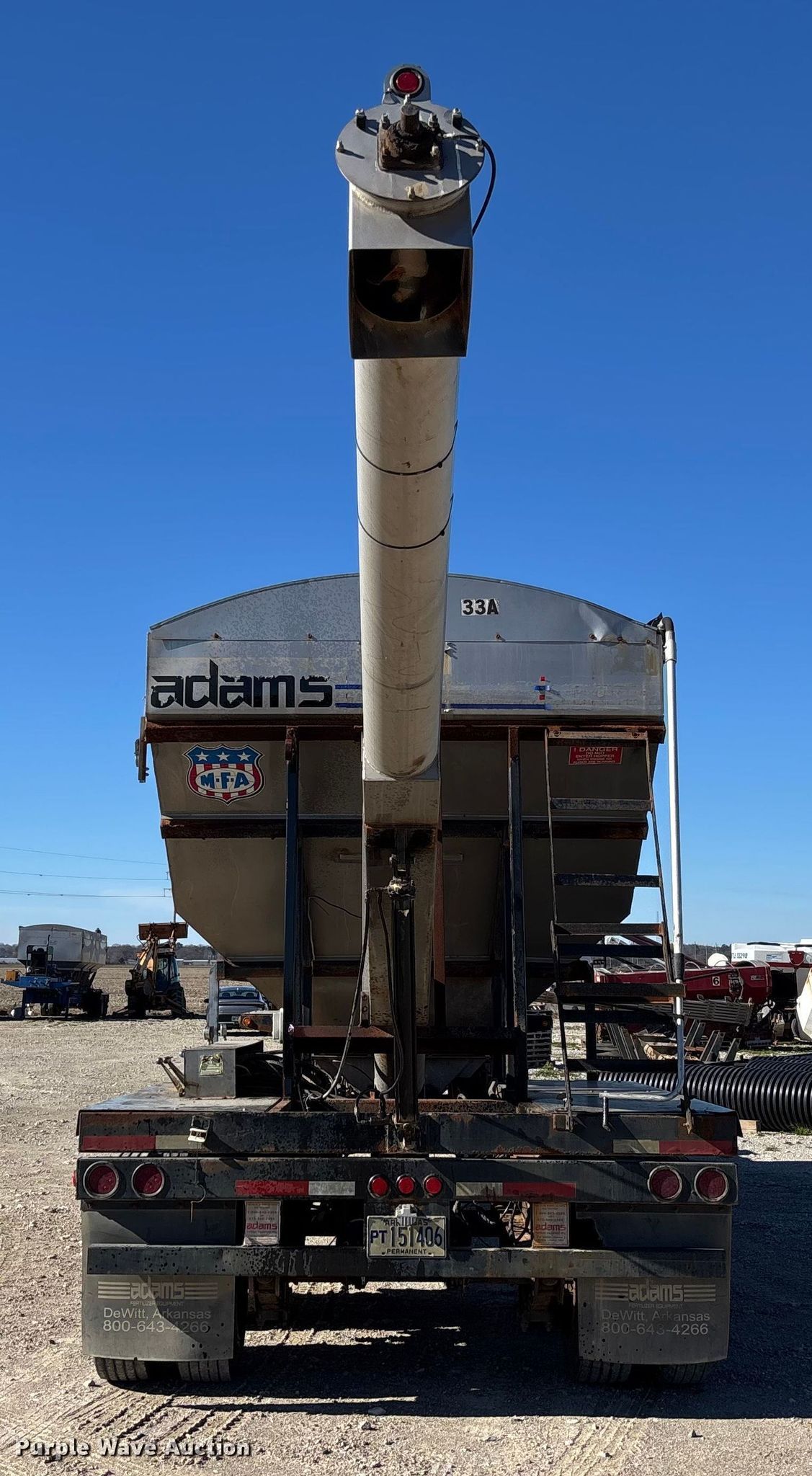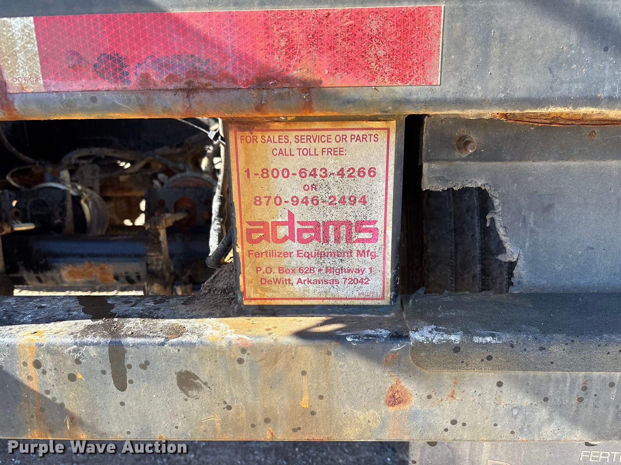 This 2014 Magnolia Adams fertilizer tender trailer will sell to the highest bidder regardless of price.