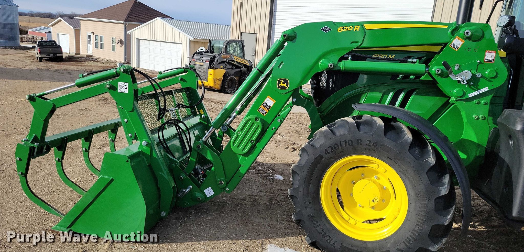 John Deere 620R loader. Features. Quick attach, Self-leveling, Grapple bucket Width: 99". Notes Removed from a John Deere 6130M tractor, Joystick not included, Mounting brackets not included, Tractor not included. Ray Cwach. Yankton, SD 57078
