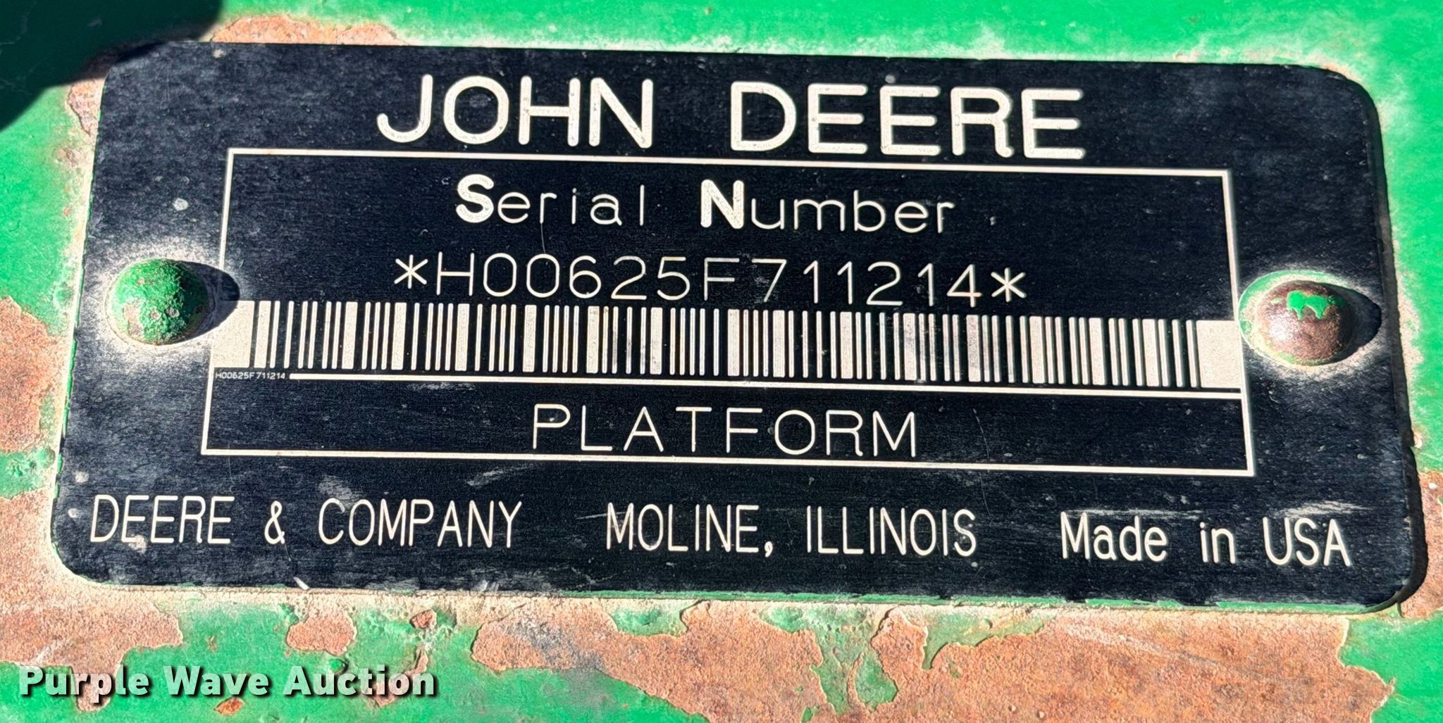 Purple Wave is selling a used Platform or Stripper Head in Missouri. This item is a 2003 John Deere 625F flex draper head with the following: Serial: H00625F711214, Unit #: 99794895
