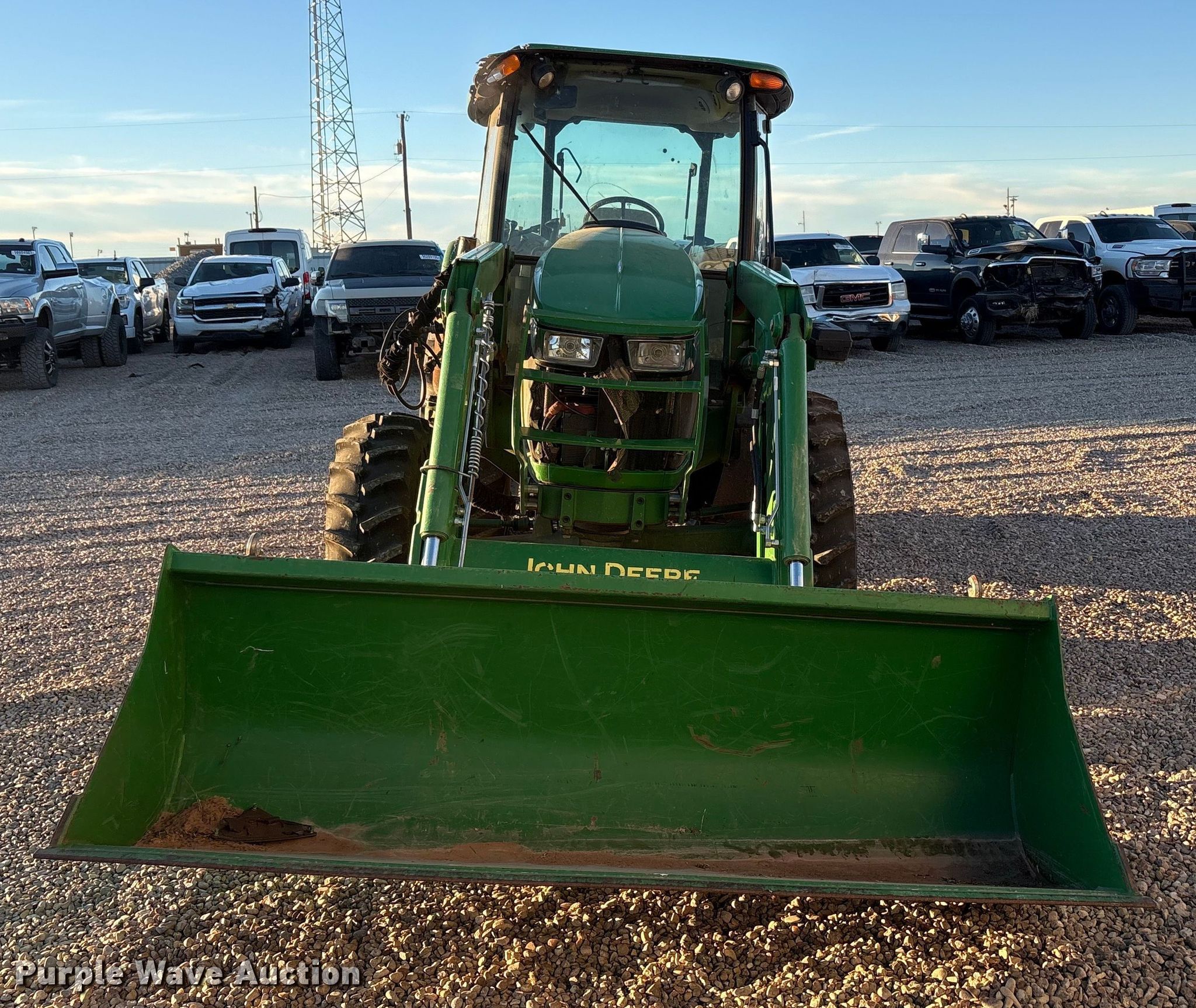 2022 John Deere 5100E MFWD tractor. Hours: Unknown, Serial: 1P05100ETN5071716, Unit #: 95682475. Engine John Deere, Displacement: 4.5L, Cylinders: 4, Fuel type: Diesel. Transmission Synchro, 12F - 12R, Left-hand reverser, Differential lock. Operators station AC, Heat. Features PTO: 540, Three point Top link, Seven pin outlet, Hydraulic remote sets Rear: 2, Loader John Deere 540M, Quick attach, Self-leveling, Controls: Joystick, Bucket Width: 87".. Tires Front: 12.4-24, Rear: 18.4-30. Notes Rollover damage, Possible electrical issues, Non-operational dash cluster, Loader hydraulics damaged. Buyer responsible for all aspects of loadout and removal. Insurance salvage, stored at a secured facility. Please review REQUIRED REMOVAL INSTRUCTIONS. Insurance Salvage. 3999 South Loop 335 East. Amarillo, TX 79118
