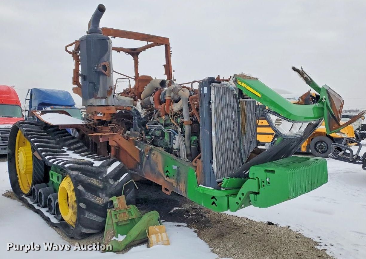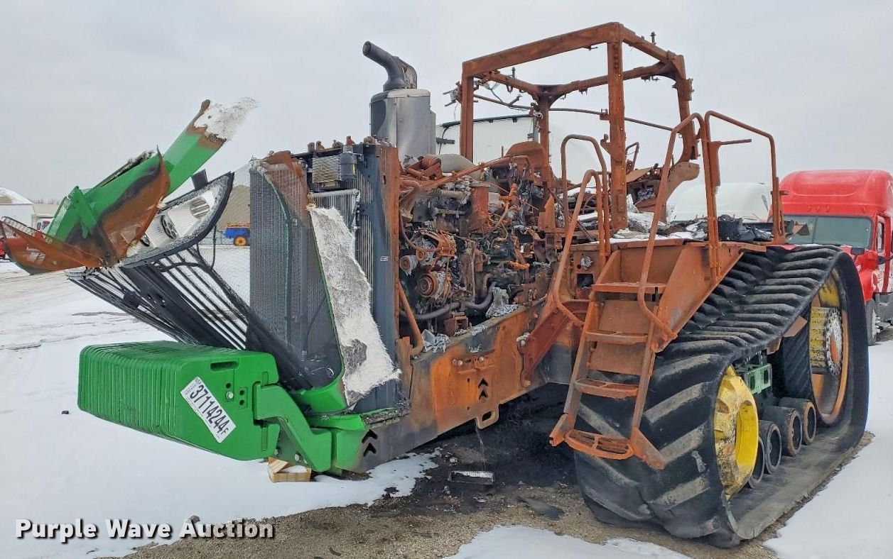 2022 John Deere 9RT 570 tractor. Hours: Unknown, Serial: 1RW9570DLNE925261, Unit #: 37114244. Engine John Deere, Displacement: 13.6L, Fuel type: Diesel. Transmission Powershift, Differential lock. Features ISOBUS outlet, Hydraulic remote sets Rear: 4. Notes Fire damage, Non-operational unit. Buyer responsible for all aspects of loadout and removal. Insurance salvage, stored at a secured facility. Please review REQUIRED REMOVAL INSTRUCTIONS. Insurance Salvage. 120 West Bartlett Road. Bartlett, IL 60103