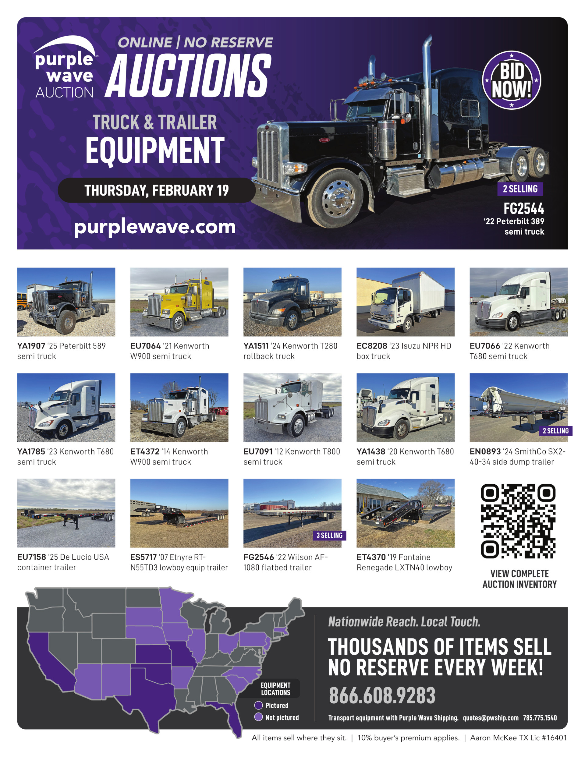 This auction is conducted by Purple Wave, Inc., whose home office is 825 Levee Drive, Manhattan, Kansas. Aaron McKee, Texas auctioneer license # 16401, operates Purple Wave, Inc. Complaints against us may be directed to the Texas Department of Licensing and Regulation, P.O. Box 12157, Austin, Texas 78711, (512) 463-6599. For additional required information, see the attached document.