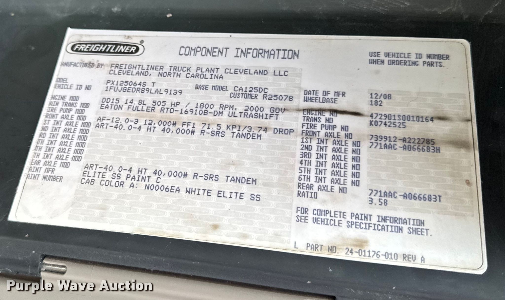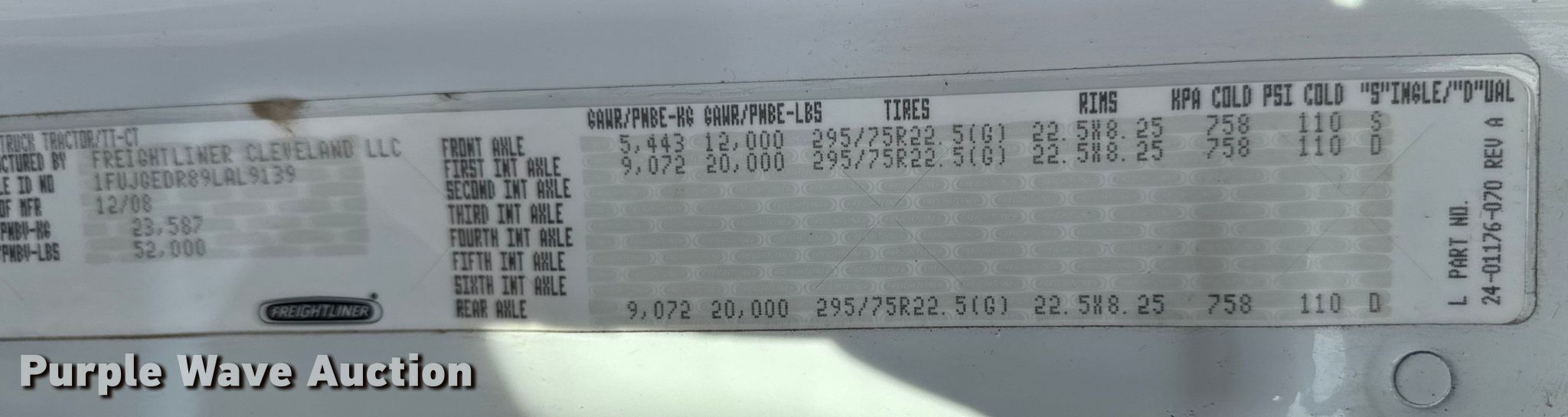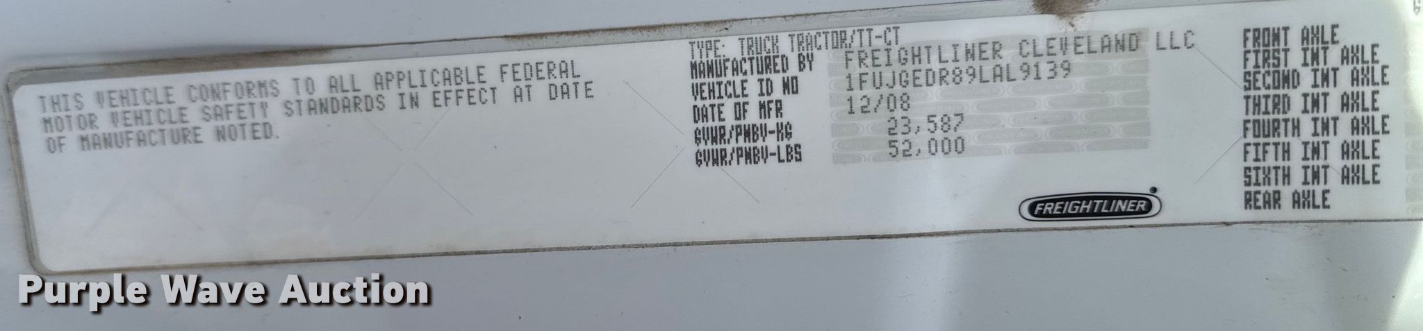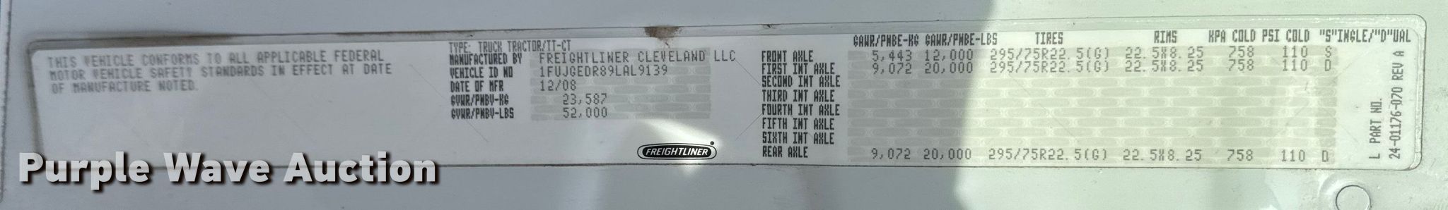 - VIN: 1FUJGEDR89LAL9139