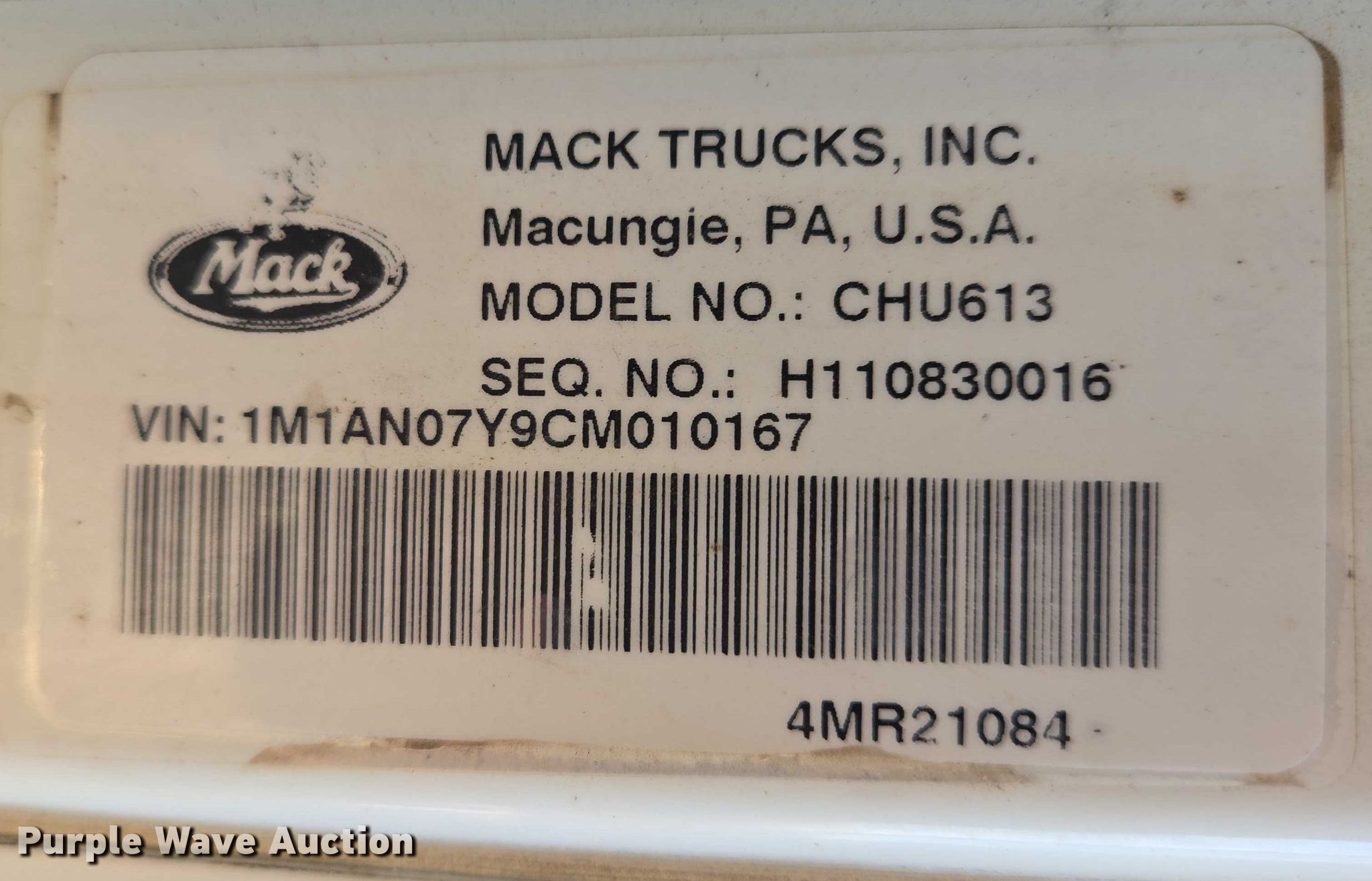 Take a look at this used 2012 Mack Pinnacle semi truck being sold on February 19th, 2026 in the Thursday February 19 Truck and Trailer Auction made by Mack. Take a look at all of the item information below or take a look at similar auctions for Trucks.