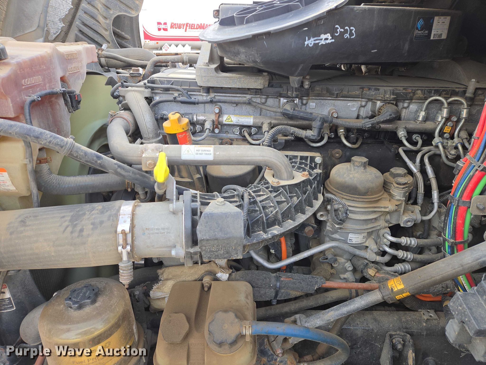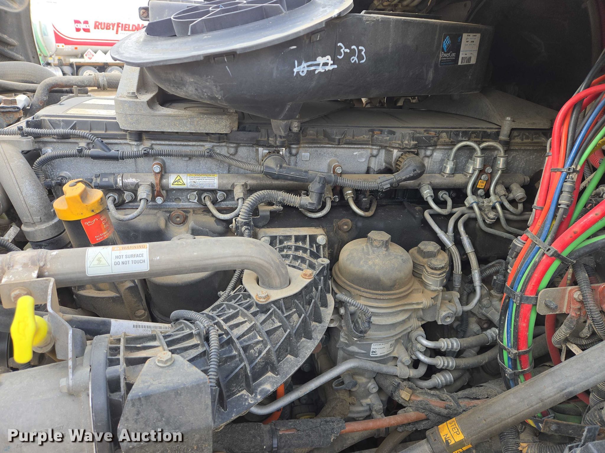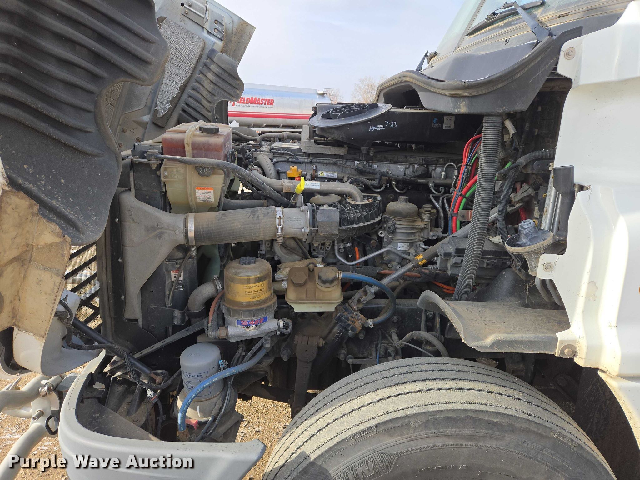 2017 Freightliner Cascadia semi truck. Miles: 604,224 on odometer, VIN: 1FUJGLDV2HLHT3020, Unit #: 163200. Engine Detroit Diesel, Displacement: 12.8L, Cylinders: 6, Fuel type: Diesel, Engine brake. Transmission Eaton Fuller FOM-15E310C-LAS Ultra shift, Automated manual. Chassis Axles: Tandem, Gear ratio: 3.36, Differential lock: Inter-axle, Suspension: Air Dump valves, Brakes: Air, PTO, Wet kit, GVWR: 46,350 lbs FAWR: 12,350 lbs, IAWR: 17,000 lbs, RAWR: 17,000 lbs, Wheelbase: 210". Interior AC, Heat, Heated mirrors, Power windows, Power locks, Cruise control, Air ride cab, Sleeper Sleeper length: 58", Beds: Single, Rear climate control. Features Deck plate: Aluminum, Fifth wheel type: Air operated, Sliding, Fuel tank: Single. Tires Front: 11R22.5, Rear: 445/50R22.5. Notes Dash warning indicator: Check engine, Windshield chipped or cracked, Wet kit hydraulic reservoir missing. Minnesota title. Title distribution may be delayed up to 30 days from verification of funds. CHS, Inc.. Sioux Falls, SD 57107