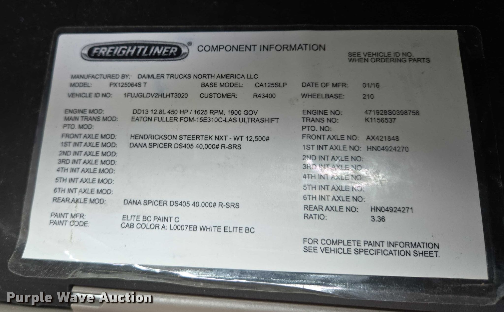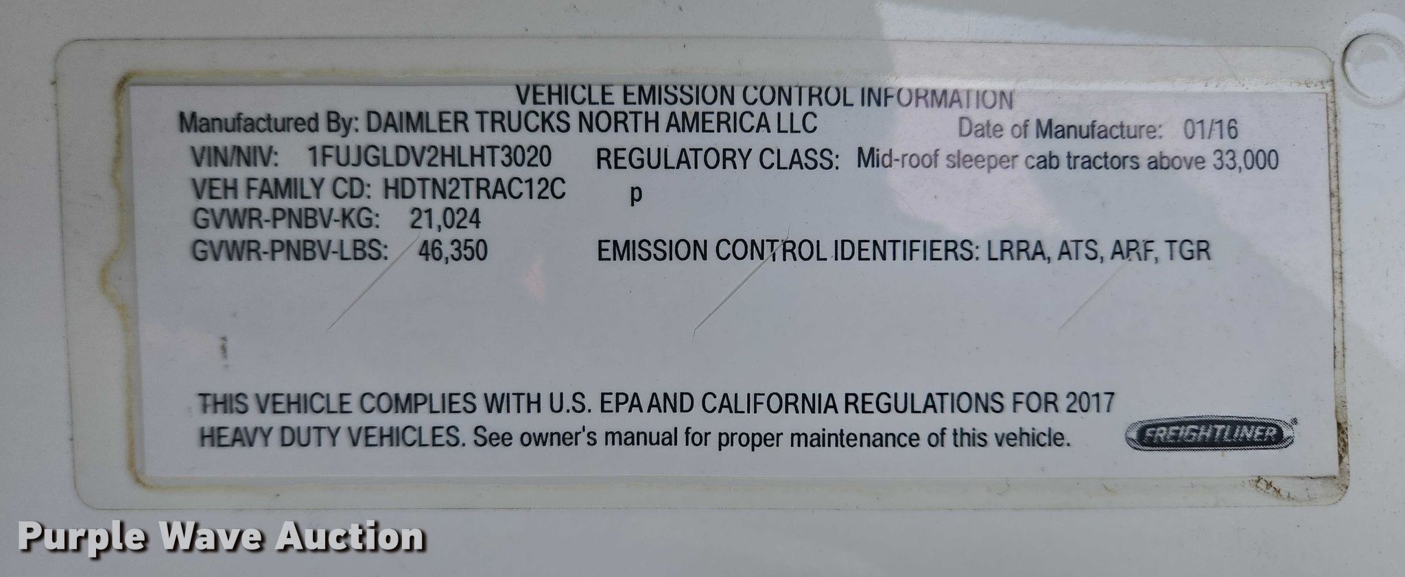 - VIN: 1FUJGLDV2HLHT3020