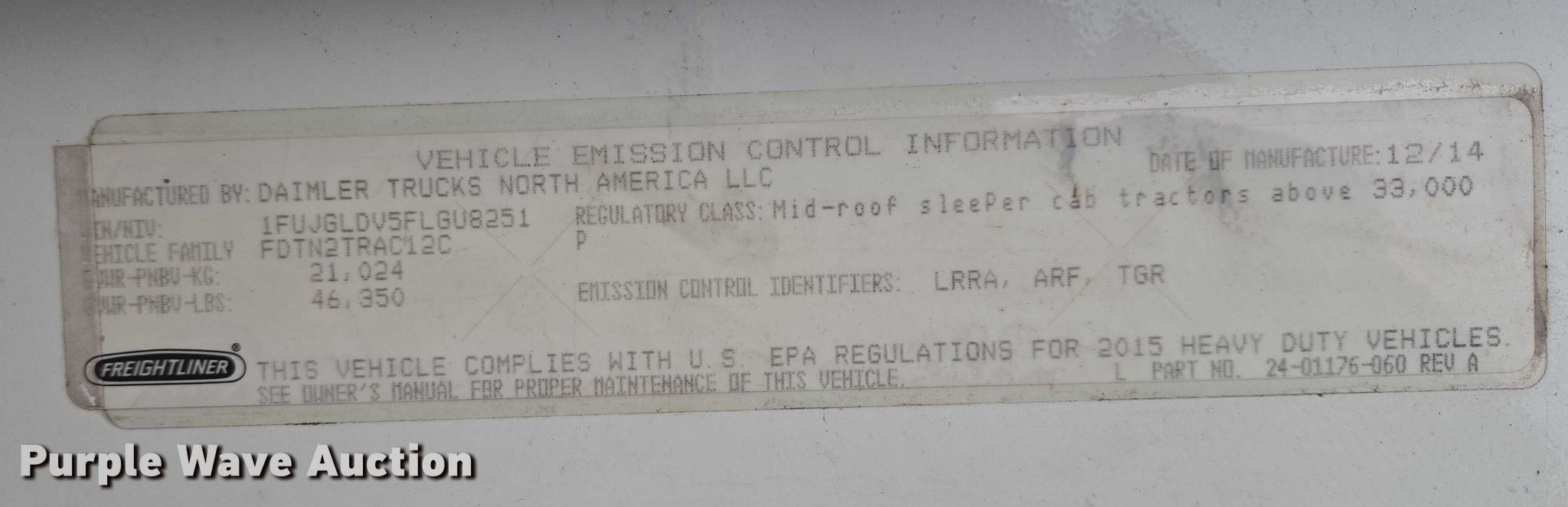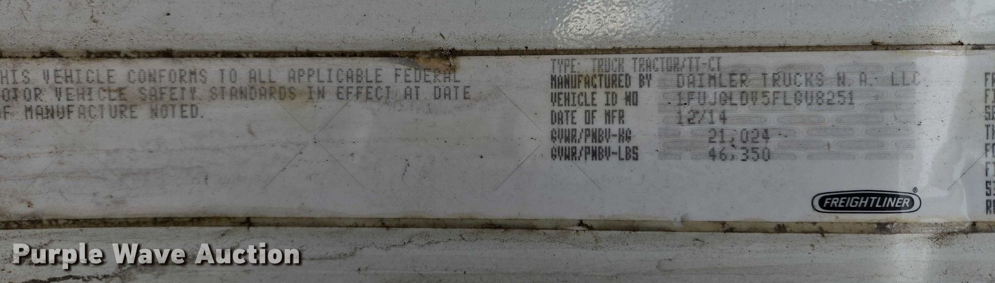 Purple Wave is selling a used Truck Tractor in South Dakota. This item is a 2015 Freightliner Cascadia semi truck with the following: Miles: 851,540 on odometer, VIN: 1FUJGLDV5FLGU8251, Unit #: 153264