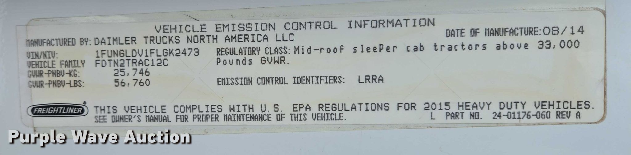 Purple Wave is selling a used Truck Tractor in North Dakota. This item is a 2015 Freightliner Cascadia semi truck with the following: Miles: 819,411 on odometer, VIN: 1FUNGLDV1FLGK2473, Unit #: 153039