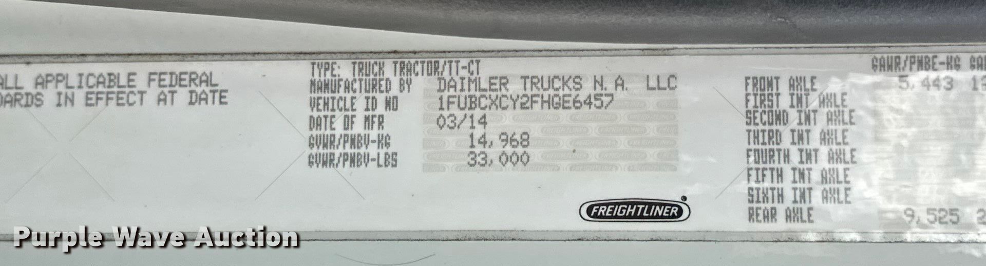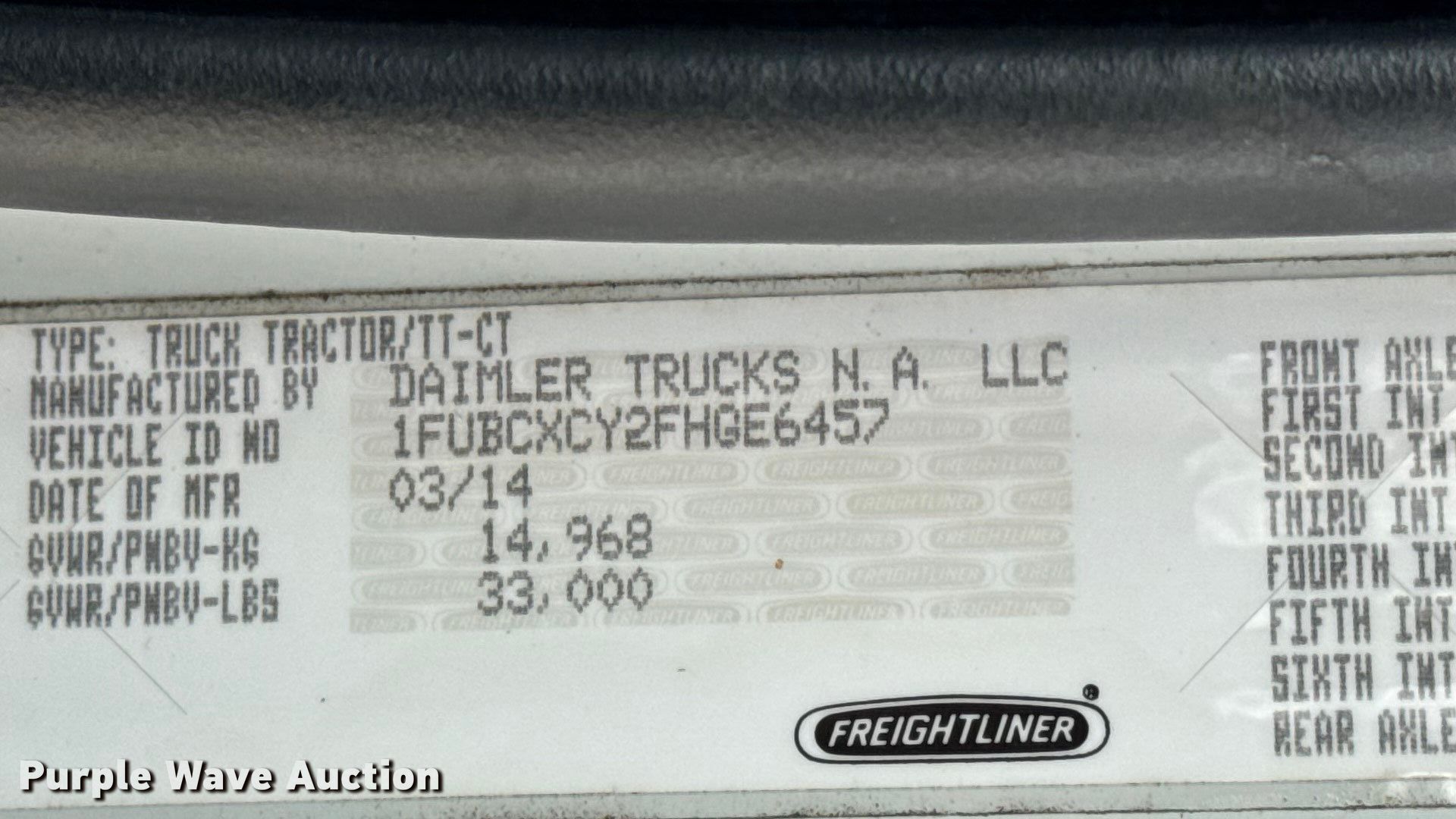 Purple Wave is selling a used Truck Tractor in Missouri. This item is a 2015 Freightliner M2 semi truck with the following: Miles: 246,737 on odometer, Hours: 13,525 on meter, VIN: 1FUBCXCY2FHGE6457