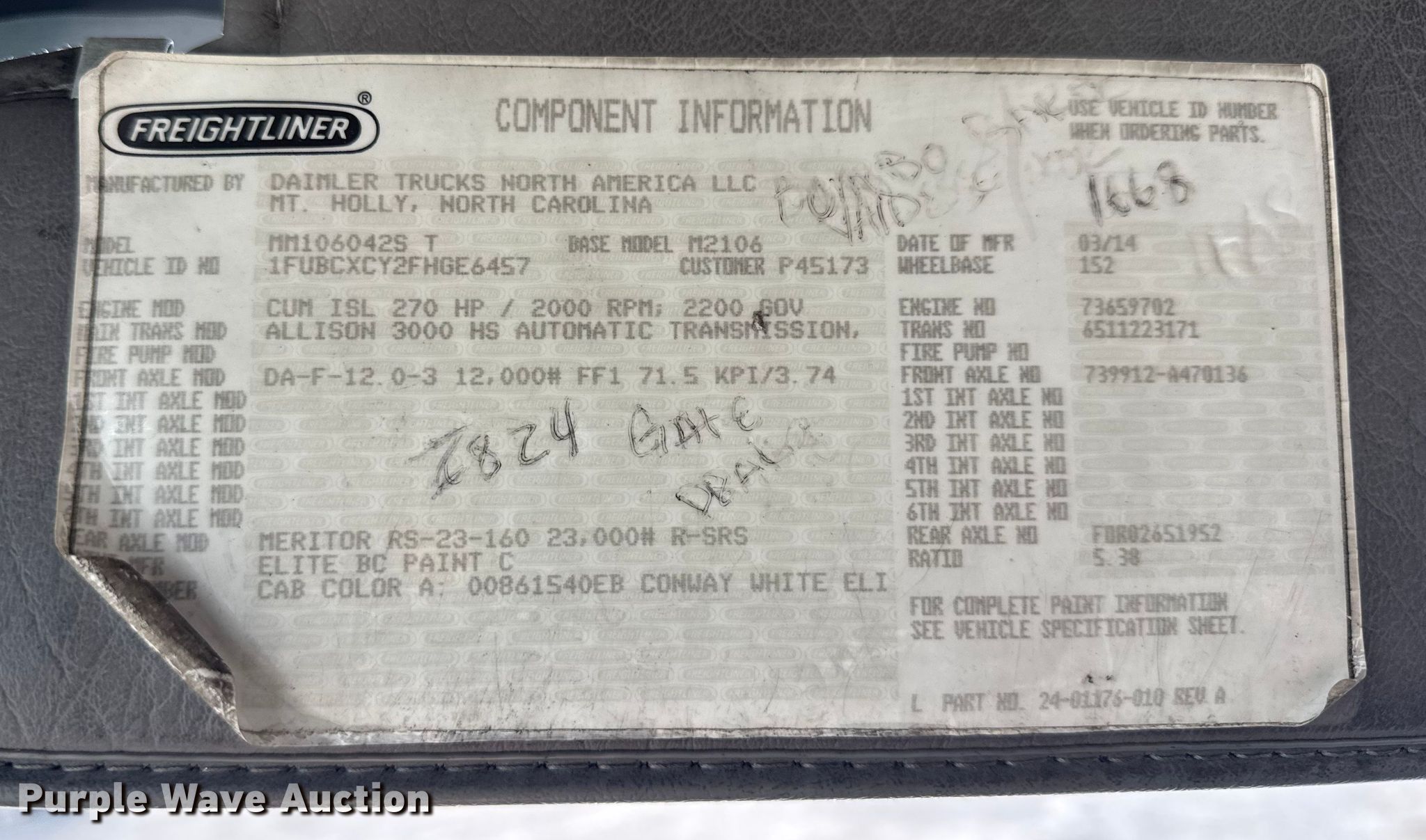 Take a look at this used 2015 Freightliner M2 semi truck being sold on February 19th, 2026 in the Thursday February 19 Truck and Trailer Auction made by Freightliner. Take a look at all of the item information below or take a look at similar auctions for Trucks.