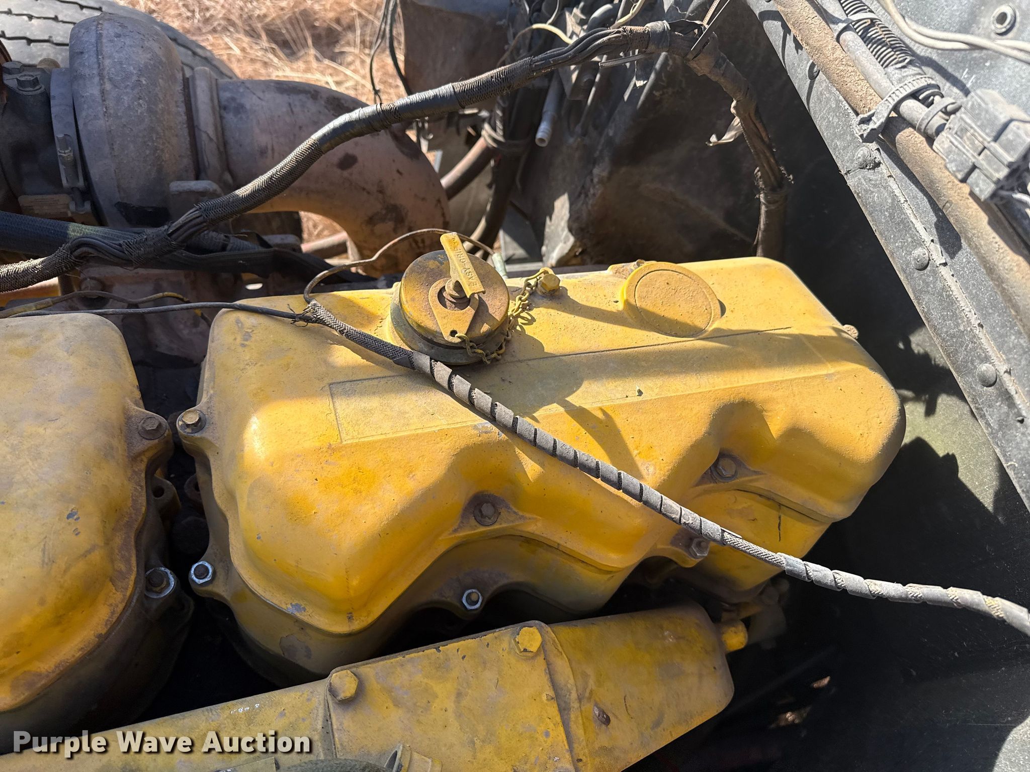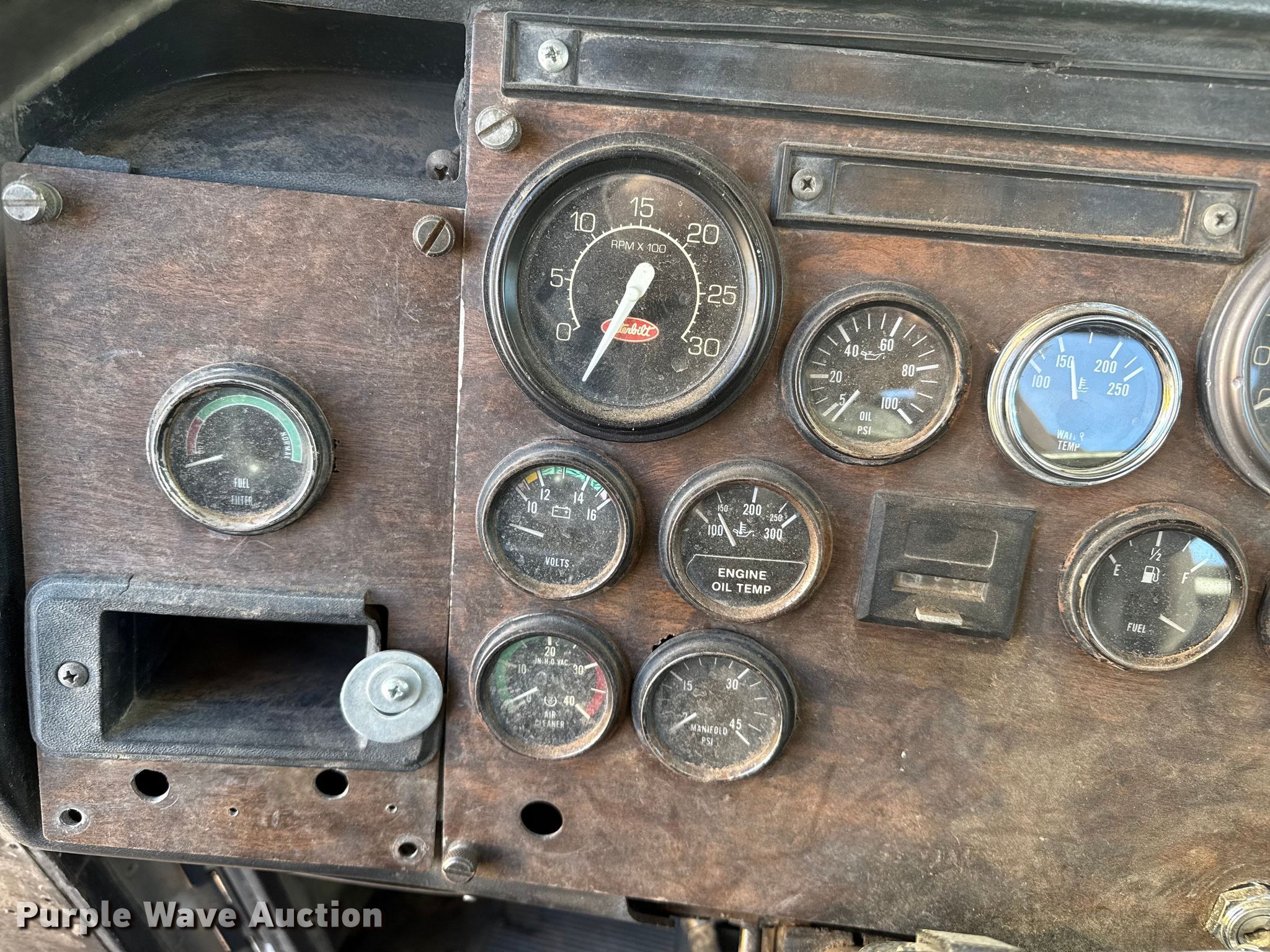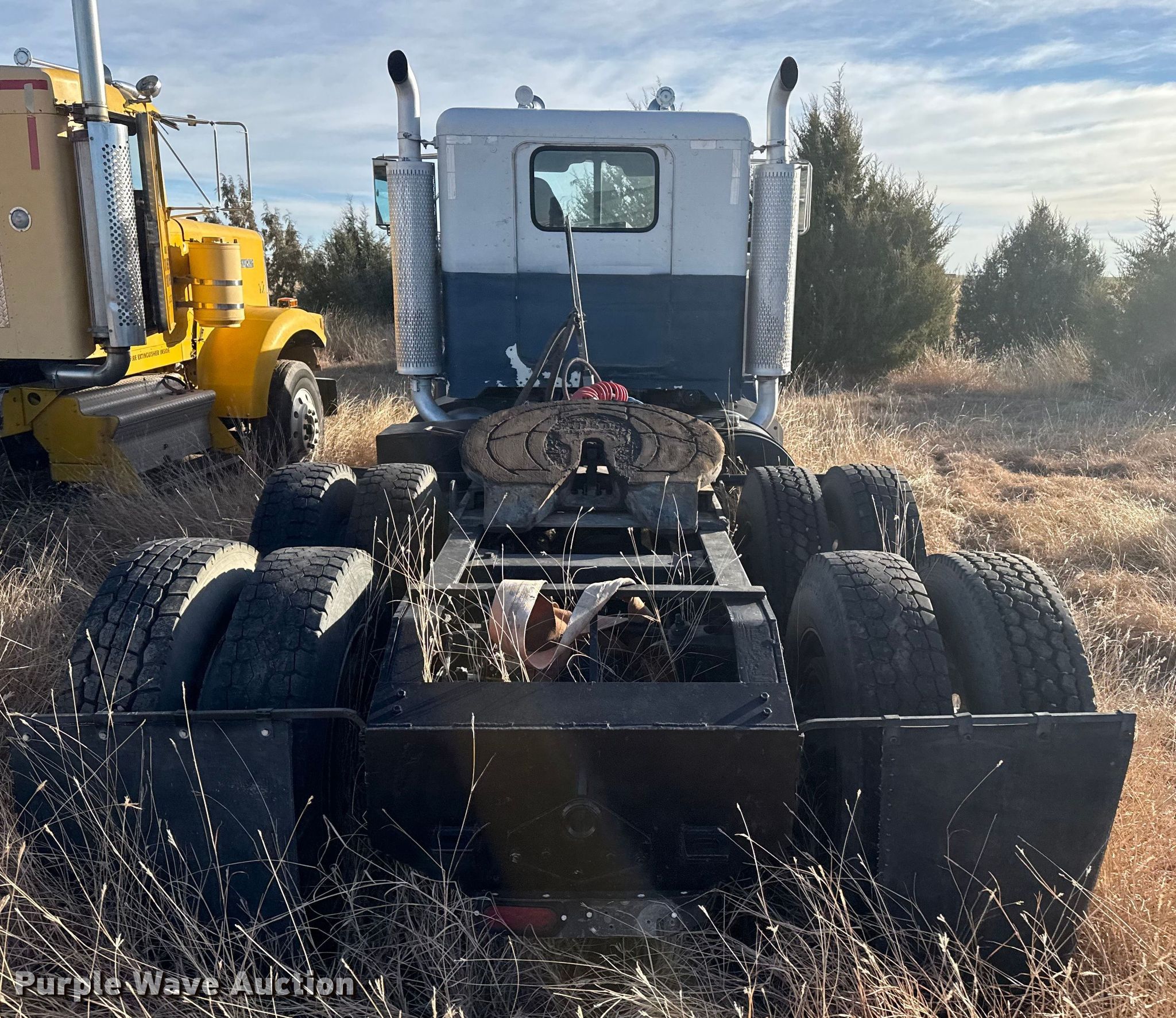1989 Peterbilt 379 semi truck. Miles: 893,879 on odometer, VIN: 1XP5DB9X1KD274663. Engine Caterpillar, Cylinders: 6, Fuel type: Diesel, Engine brake. Transmission Manual, Speed: 18. Chassis Axles: Tandem, Differential lock: Inter-axle, Suspension: Air, Brakes: Air, PTO, Wet kit. Interior Heat. Features Deck plate: Aluminum, Fifth wheel type: Air operated, Sliding, Fuel tank: Dual. Tires Size: 11R24.5. Notes Turbo issues , Unit must be towed or hauled. Texas title. Title distribution may be delayed up to 30 days from verification of funds. Squared Away Custom Baling LLC. Dalhart, TX 79022