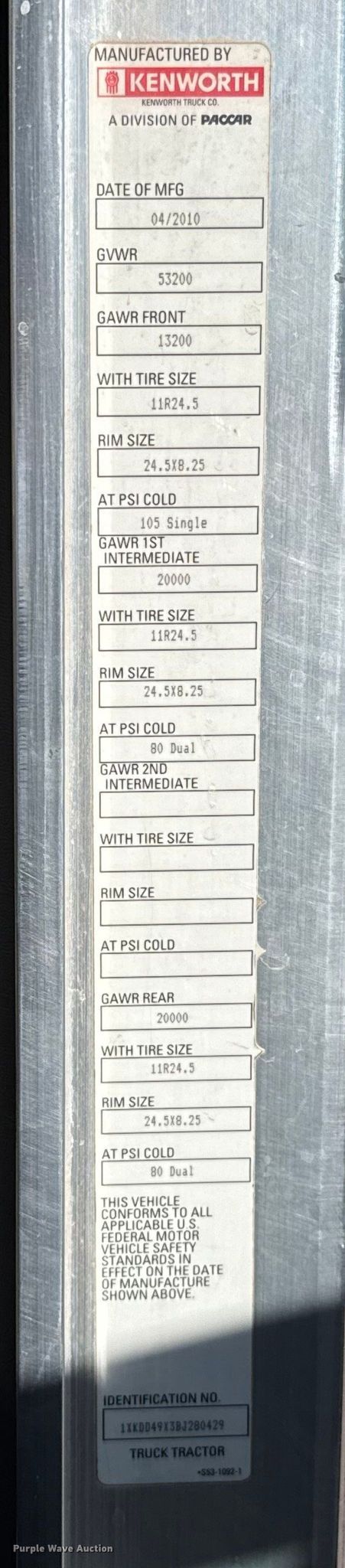 - VIN: 1XKDD49X3BJ280429