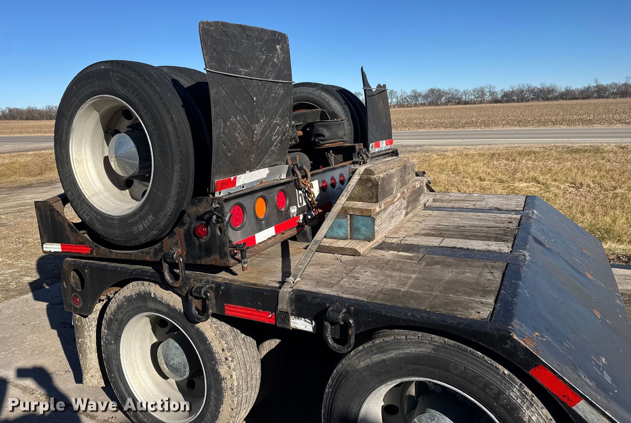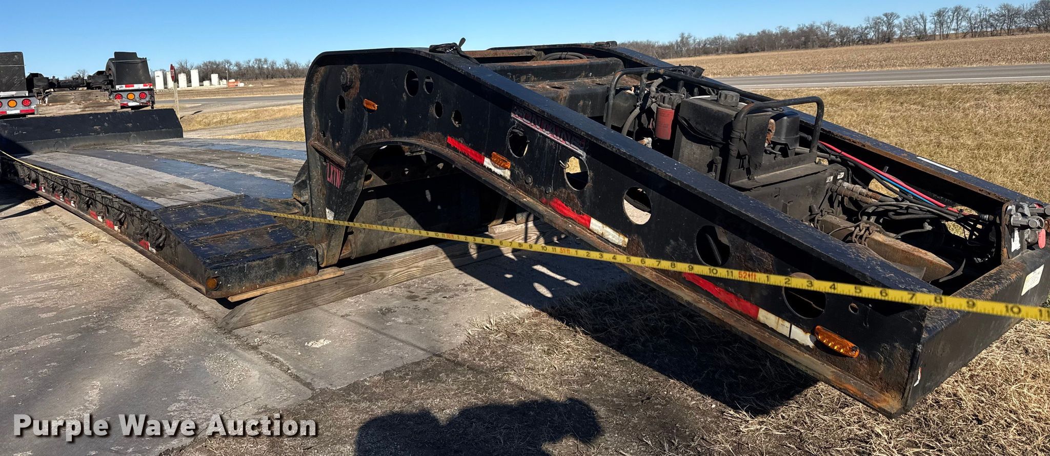2019 Fontaine Renegade LXTN40 lowboy equipment trailer. VIN: 57J650209K3575614. Dimensions Overall Length: 51', Width: 102", Deck Length: 29' 6", Rear deck length: 7' 8". Features Deck type: Steel, Wood, Outriggers: Swing-out Board size: 12", Neck type: Detachable, Self-contained hydraulics, Hydraulic controls: Manual. Chassis Suspension: Air, Brakes: Air, Axles: Tandem Detachable tag, GVWR: 76,798 lbs. Tires Aluminum wheels, Size: 255/70R22.5. Notes Non-operational pony motor, Will be repaired prior to auction. 2018 Fontaine LX flip axle VIN: 57JM04107K35P1513. Dimensions Overall Length: 4' 5", Width: 102". Chassis Suspension: Air, Brakes: Air, GVWR: 20,280 lbs. Tires Aluminum wheels, Size: 255/70R22.5. Wyoming title. Title distribution may be delayed up to 14 days from verification of funds. C.H. Brown Co.. Durham, KS 67438