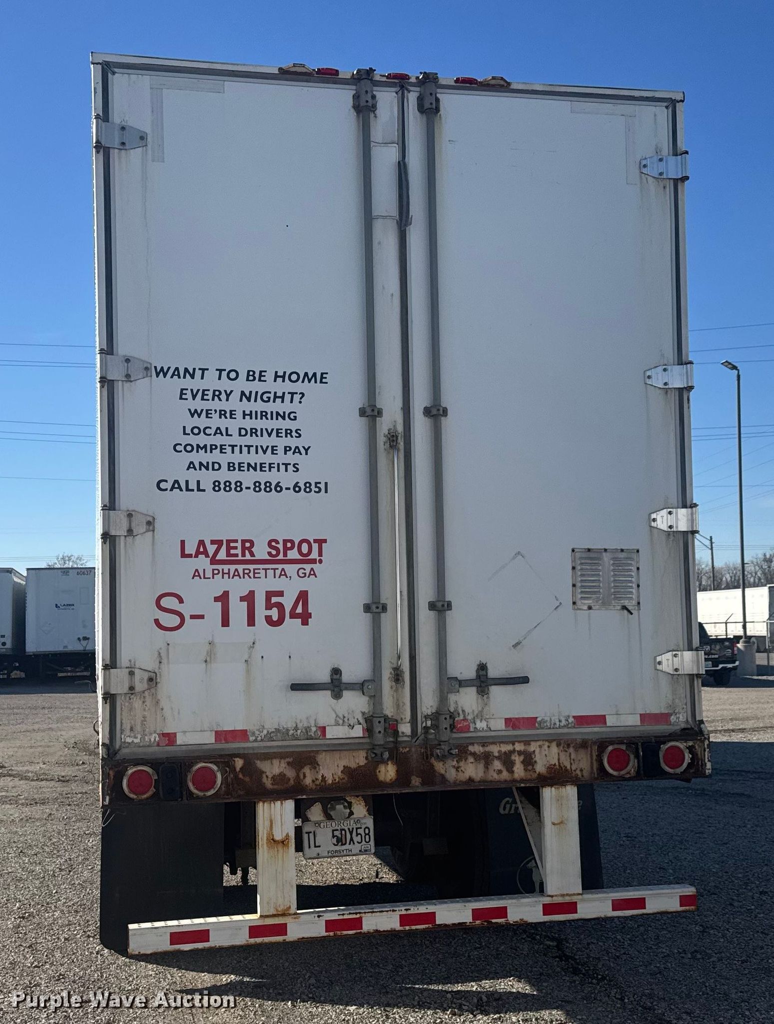2007 Great Dane 7311TP-SAL dry van trailer. VIN: 1GRAA06277G343535, Unit #: R43535, 1154. Dimensions Overall Length: 53', Width: 102". Features Deck type: Wood. Chassis Landing gear: Dual, Suspension: Air, Brakes: Air, Axles: Tandem Sliding, GVWR: 68,000 lbs, GAWR: 20,000 lbs. Tires Steel wheels, Sizes: 275/80R24.5, 285/75R24.5. Georgia title. Title distribution may be delayed up to 14 days from verification of funds. 3414 Gardner Avenue. Kansas City, MO 64120