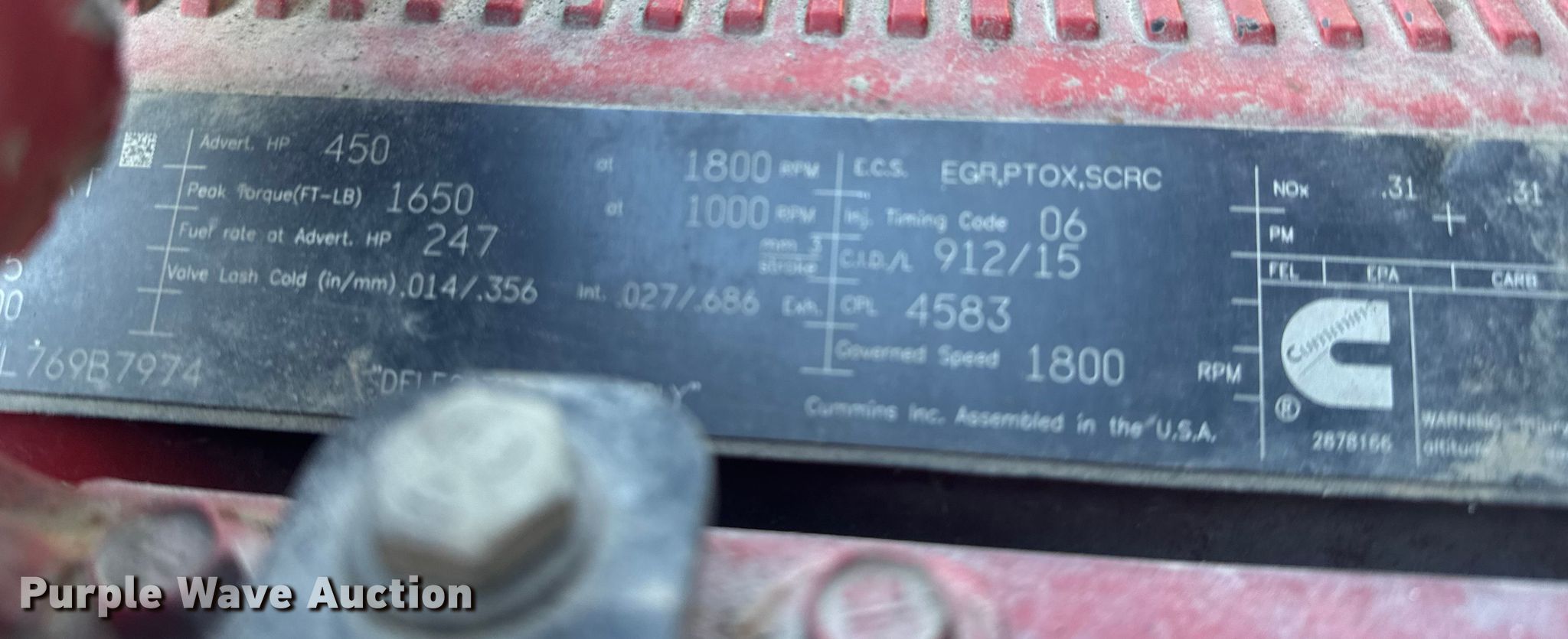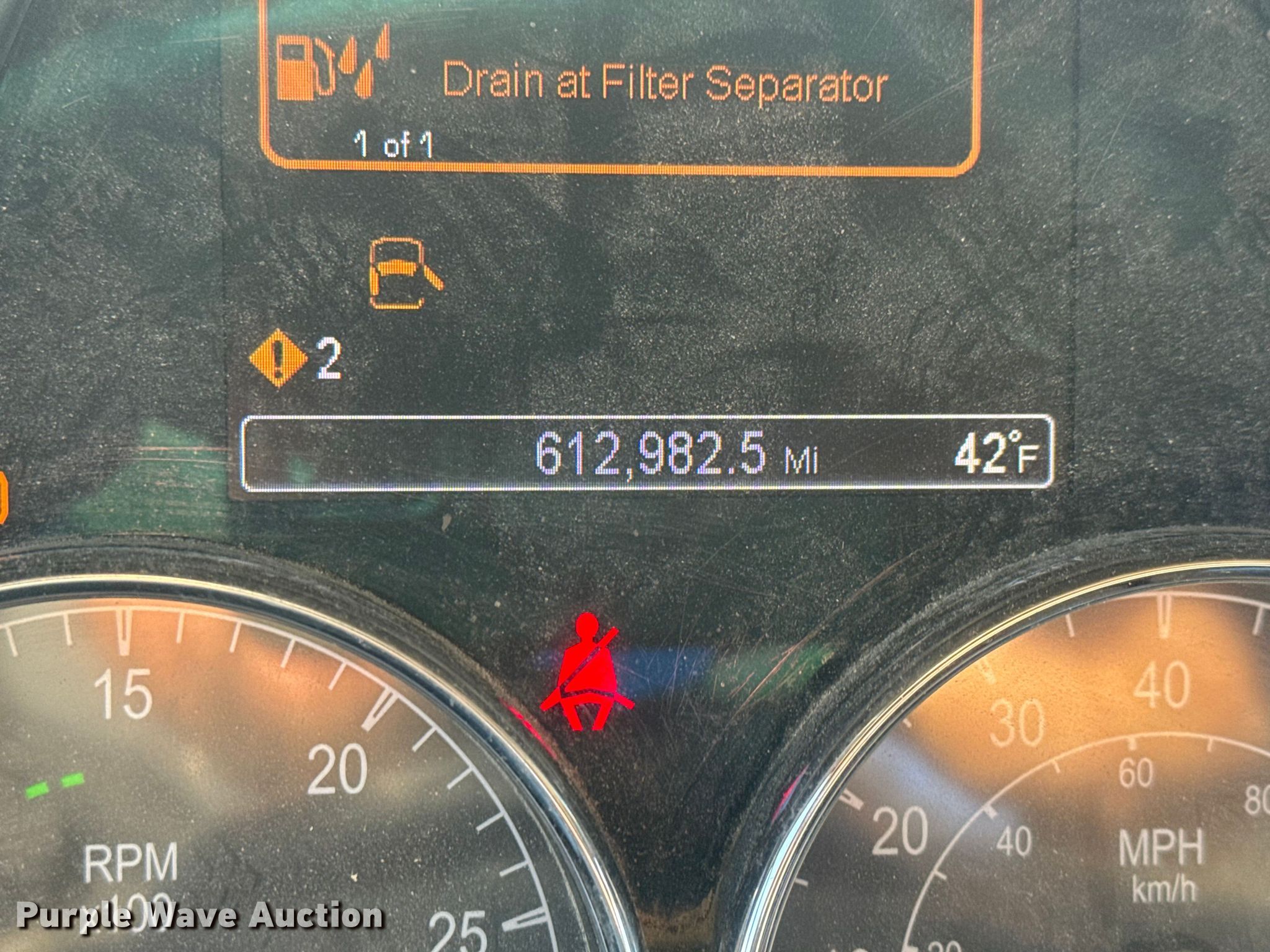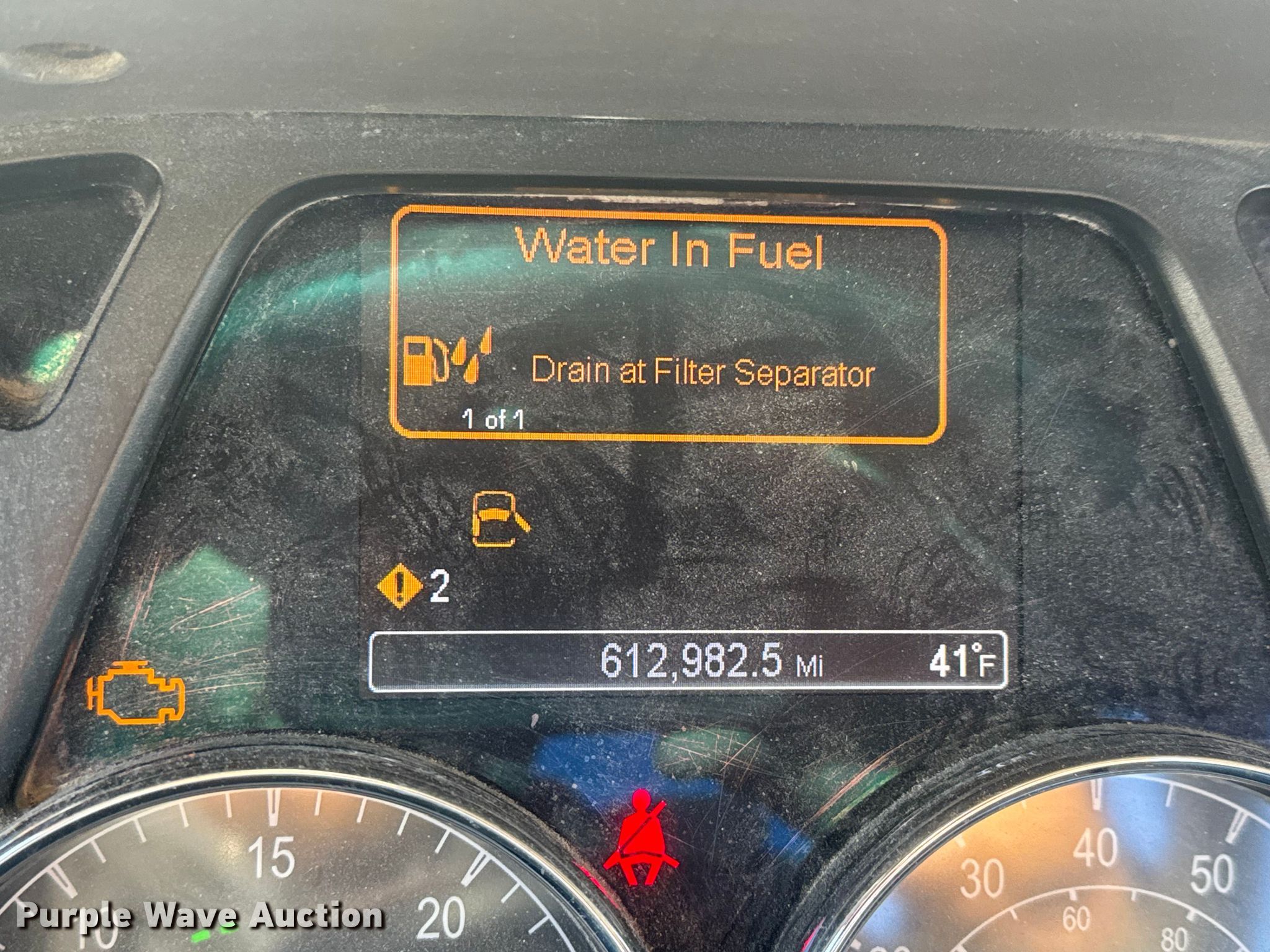2016 Peterbilt 579 semi truck. Miles: 612,983 on odometer, Hours: 18,545 on meter, VIN: 1XPBD49X3GD322878. Engine Cummins ISX15 450, Serial: 79815072, Displacement: 15.0L, Cylinders: 6, Fuel type: Diesel, Engine brake. Transmission Eaton Fuller, Manual, Speed: 10. Chassis Axles: Tandem, Suspension: Air, Brakes: Air, GVWR: 50,350 lbs FAWR: 12,350 lbs, IAWR: 19,000 lbs, RAWR: 19,000 lbs. Interior AC, Heat, Cruise control, Air ride cab. Features Fifth wheel type: Air operated, Sliding, Fuel tank: Single. Tires Front: 295/75R22.5, Rear: 275/80R22.5. Notes Dash warning indicator: Check engine, Traction control, Water in fuel, SRC system altered or fault detection, Windshield chipped or cracked, Collision damage , Fuel tank damaged, hole in tank, Unit must be towed or hauled. Missouri title. Title distribution may be delayed up to 30 days from verification of funds. Glasgow, MO 65254