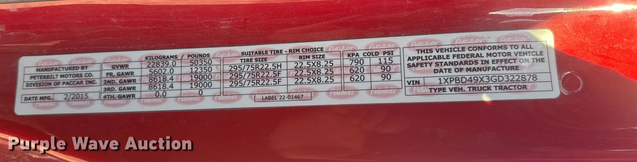 Purple Wave is selling a used Truck Tractor in Missouri. This item is a 2016 Peterbilt 579 semi truck with the following: Miles: 612,983 on odometer, Hours: 18,545 on meter, VIN: 1XPBD49X3GD322878