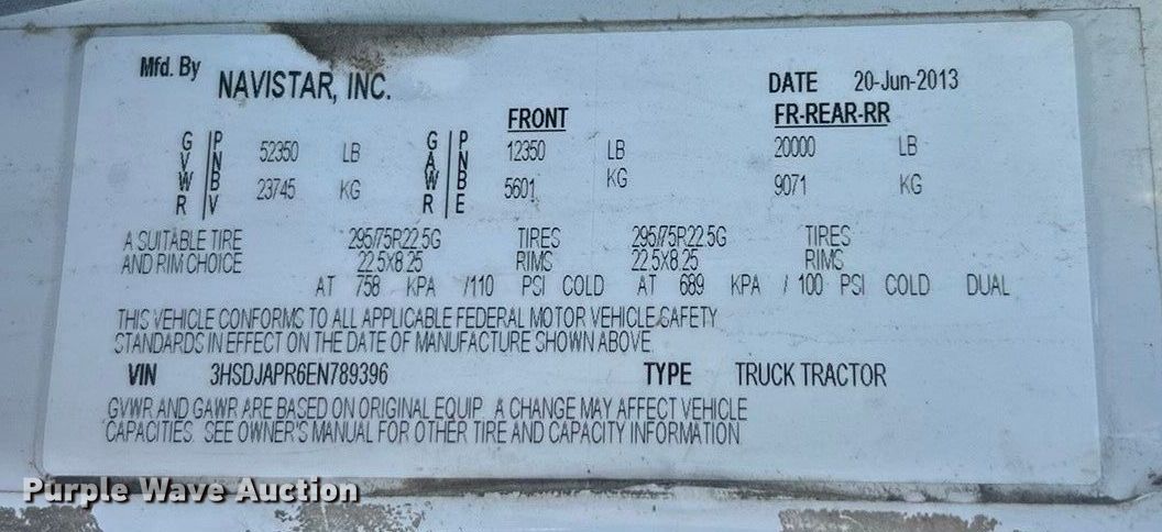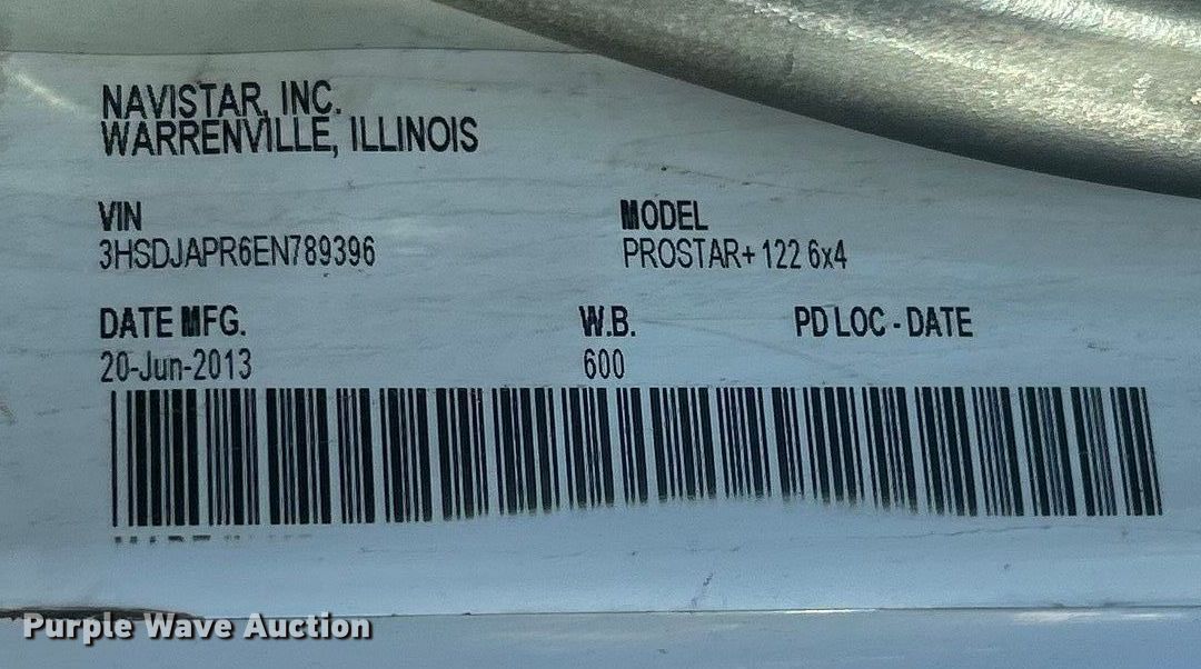 Purple Wave is selling a used Truck Tractor in Illinois. This item is a 2014 International ProStar+122 semi truck with the following: Miles: 954,125 on odometer, Hours: 25,705 on meter, VIN: 3HSDJAPR6EN789396