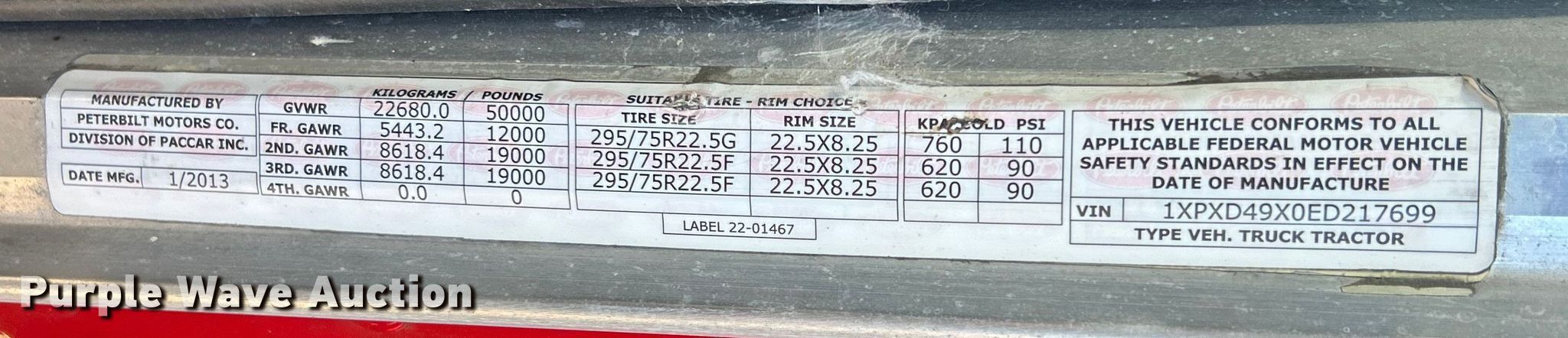 - VIN: 1XPXD49X0ED217699