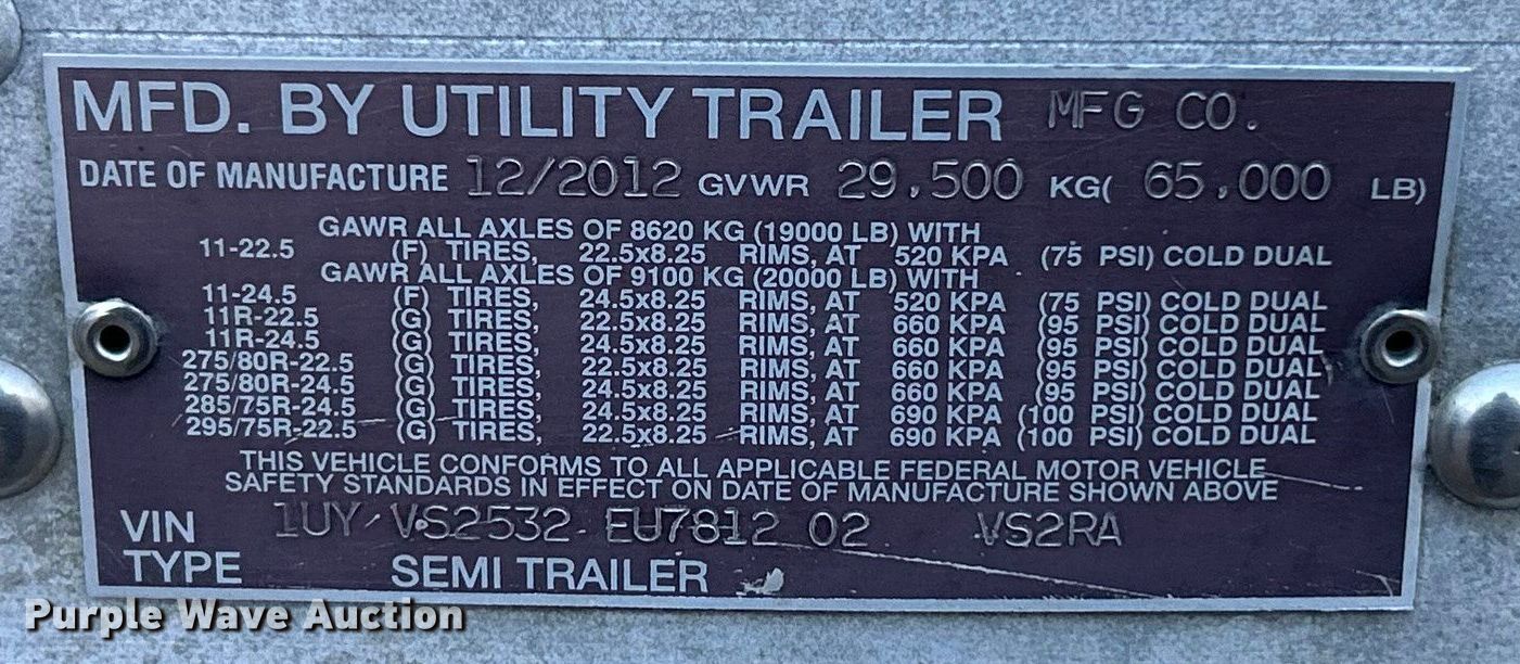 Purple Wave is selling a used Refrigerated Van Trailer in Missouri. This item is a 2014 Utility VS2RA refrigerated van trailer with the following: VIN: 1UYVS2532EU781202
