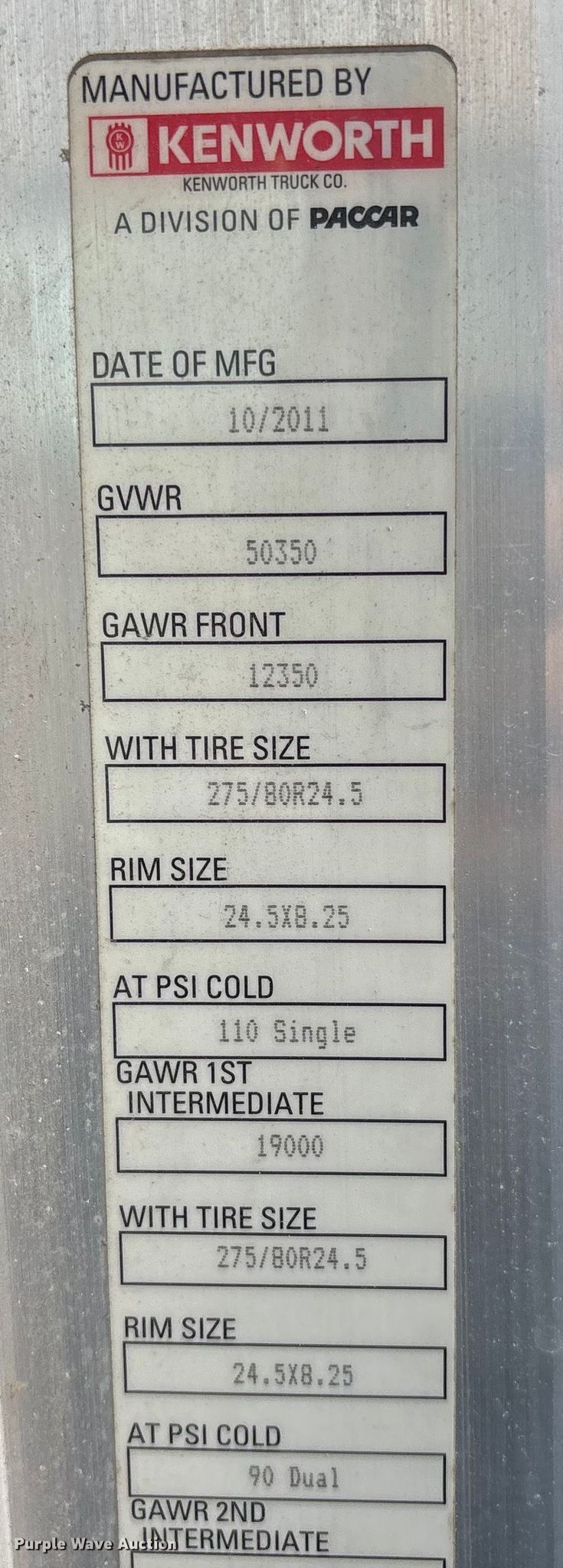 Take a look at this used 2012 Kenworth T800 semi truck being sold on February 19th, 2026 in the Thursday February 19 Truck and Trailer Auction made by Kenworth. Take a look at all of the item information below or take a look at similar auctions for Trucks.
