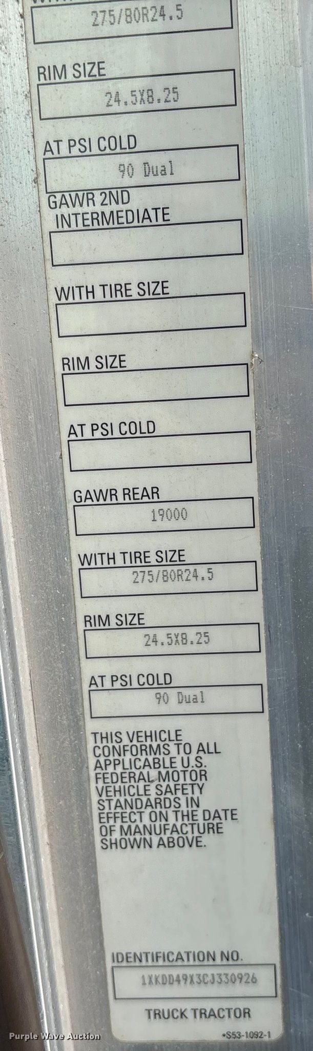 Purple Wave is selling a used Truck Tractor in Texas. This item is a 2012 Kenworth T800 semi truck with the following: Miles: 743,809 on odometer, Hours: 22,121 on meter, VIN: 1XKDD49X3CJ330926
