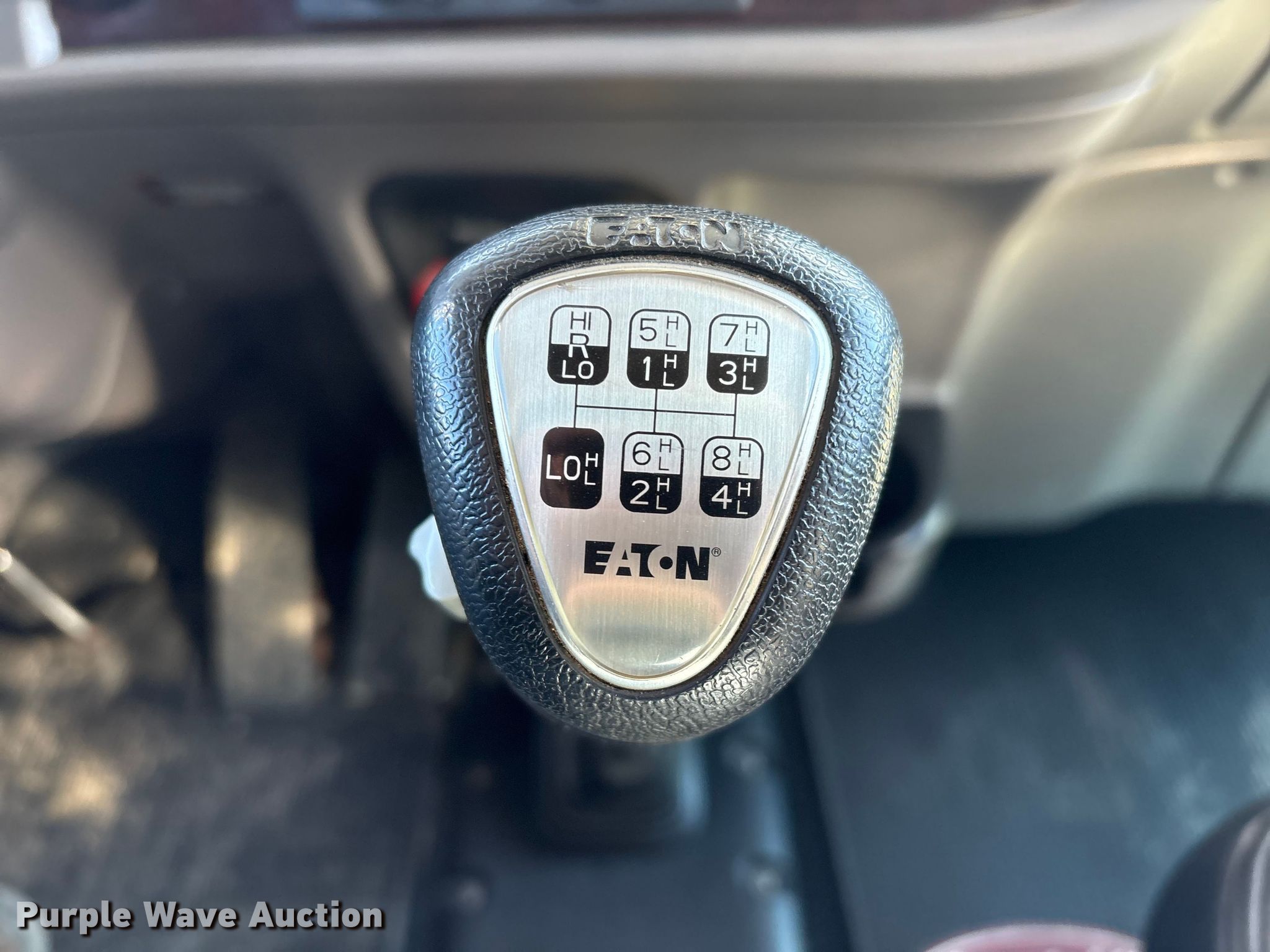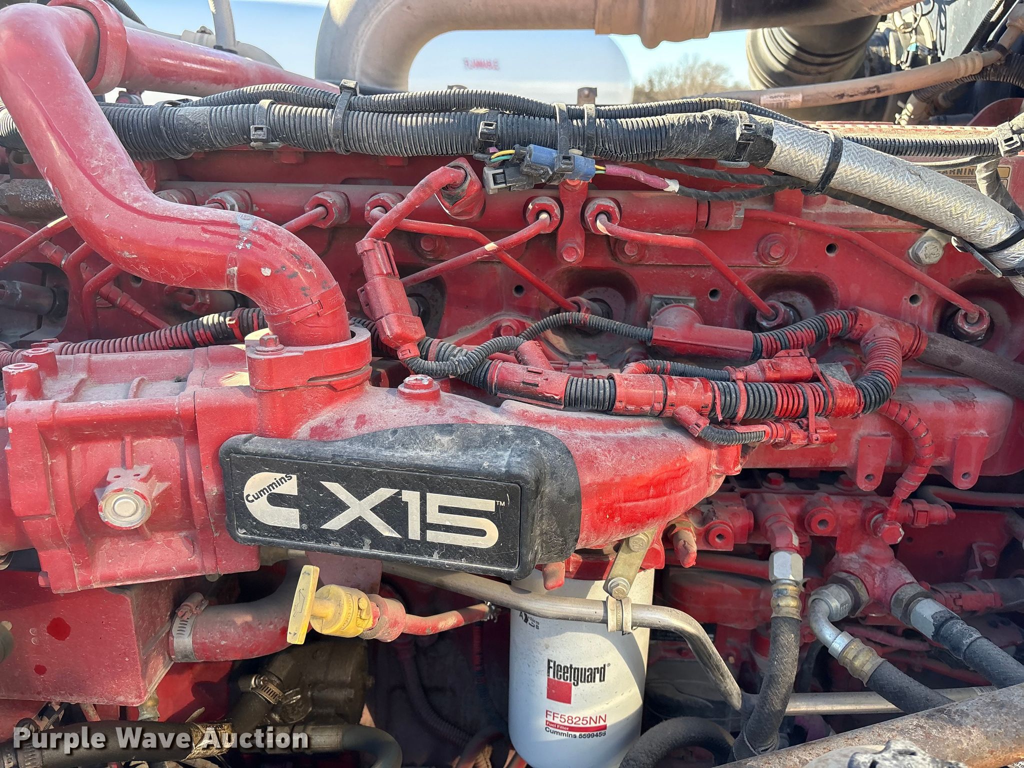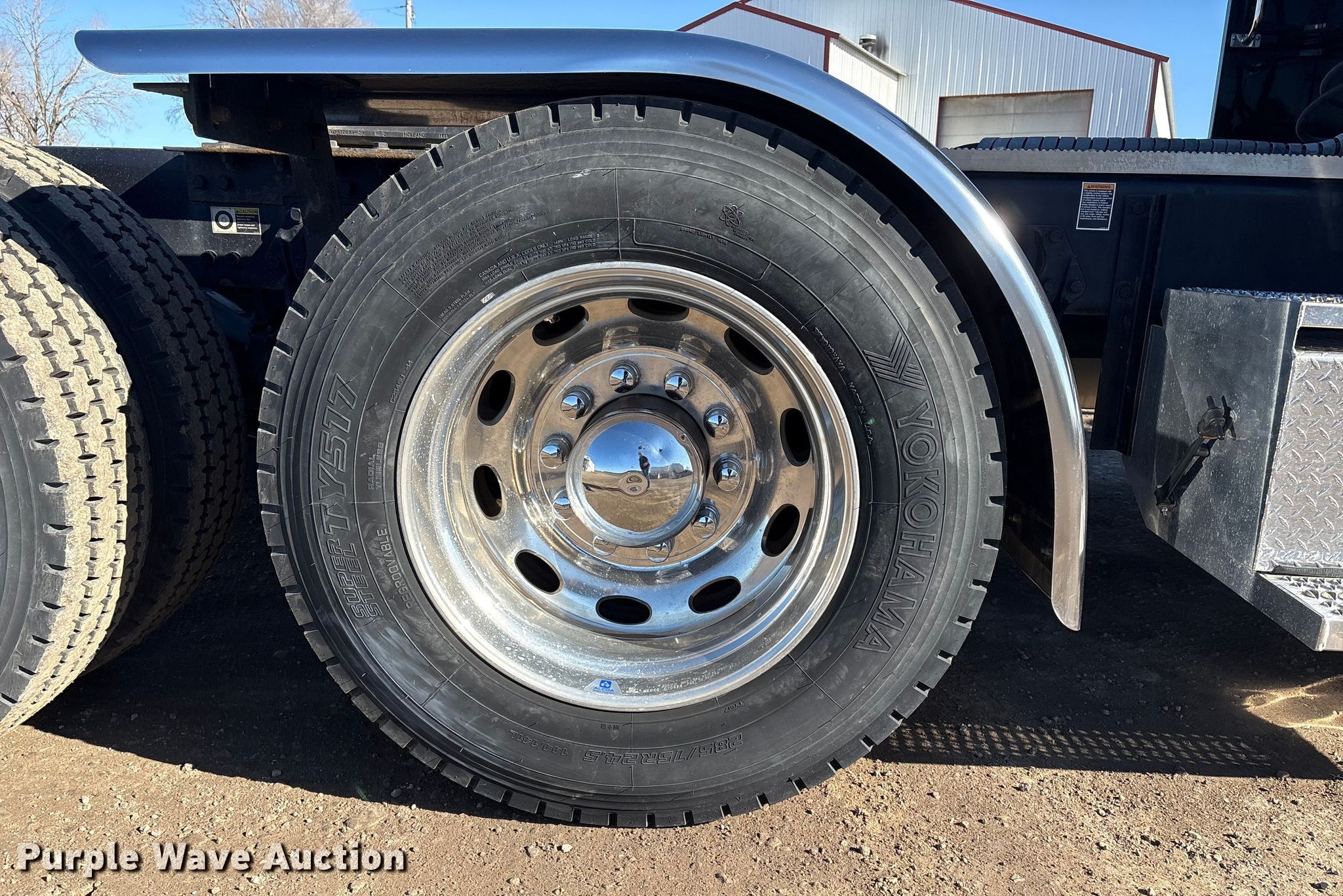 2022 Peterbilt 389 semi truck. Miles: 492,472 on odometer, Hours: 9,195 on meter, VIN: 1XPXD49X5ND789643. Engine Cummins X15 565, Serial: 80092853, Displacement: 15.0L, Cylinders: 6, Fuel type: Diesel, Engine brake. Transmission Eaton Fuller, Manual, Speed: 18. Chassis Axles: Tandem, Differential lock: Inter-axle, Suspension: Air Dump valves, Brakes: Air, Truck chassis: 13' 6", GVWR: 52,350 lbs FAWR: 12,350 lbs, IAWR: 20,000 lbs, RAWR: 20,000 lbs. Interior AC, Heat, Heated mirrors, Power windows, Power locks, Cruise control, Air ride cab, Auxiliary controls, Sleeper Sleeper length: 80", Beds: Single, Refrigerator, Rear climate control. Features Deck plate: Aluminum, Fifth wheel type: Air operated, Sliding, Fuel tank: Dual. Tires Size: 285/75R24.5. Kansas title. Title distribution may be delayed up to 30 days from verification of funds. J-Six Enterprises. Hiawatha, KS 66434