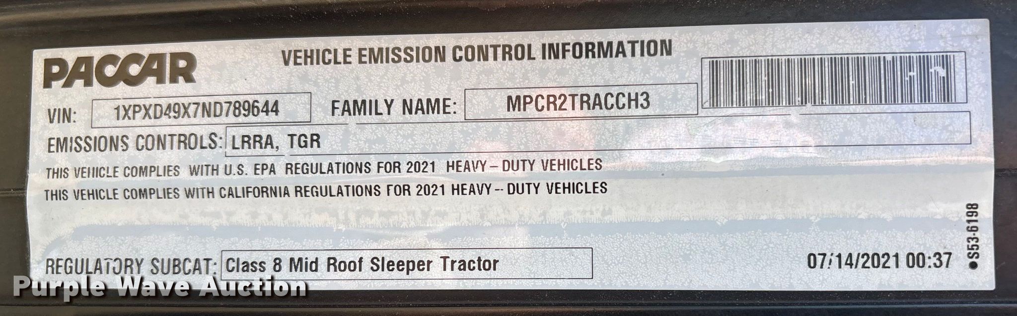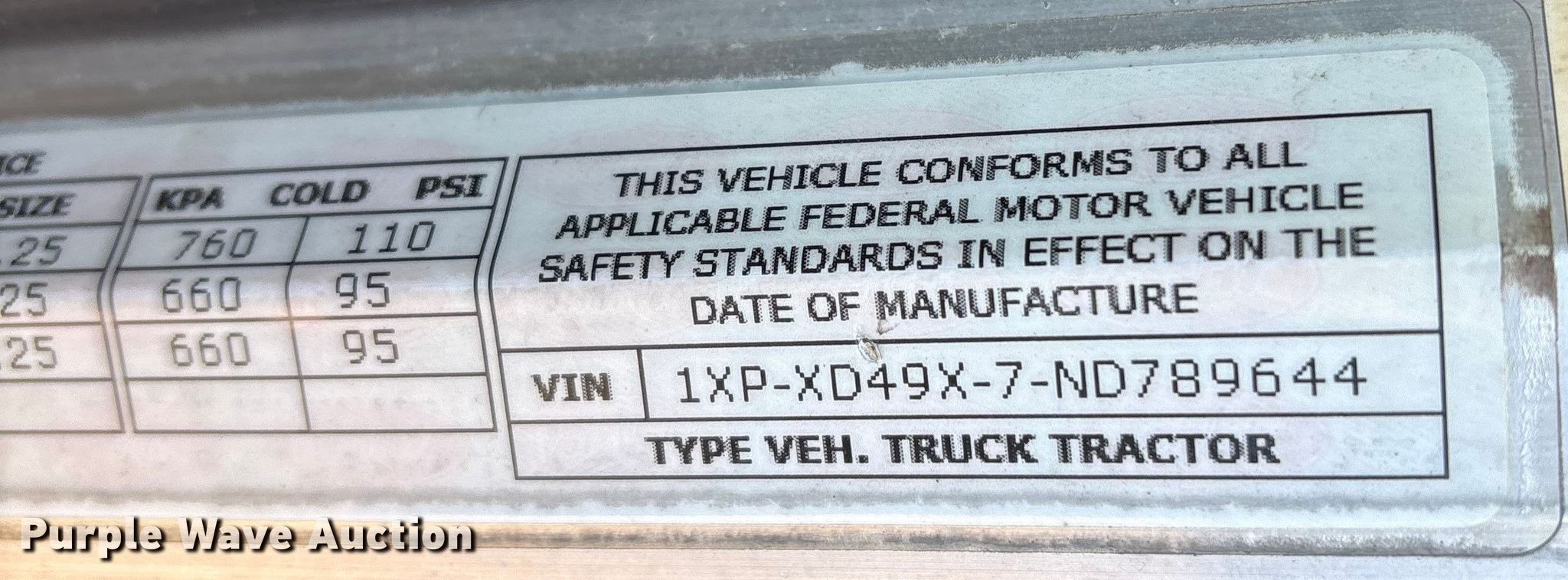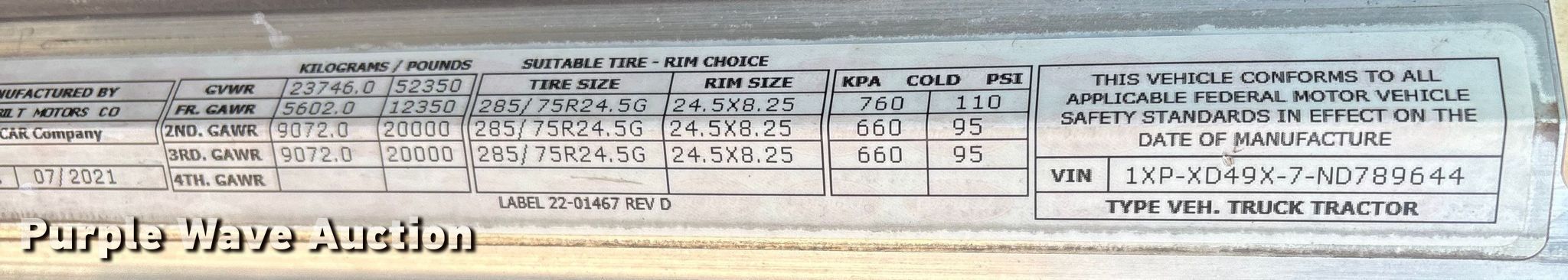 Purple Wave is selling a used Truck Tractor in Kansas. This item is a 2022 Peterbilt 389 semi truck with the following: Miles: 434,260 on odometer, Hours: 13,313 on meter, VIN: 1XPXD49X7ND789644