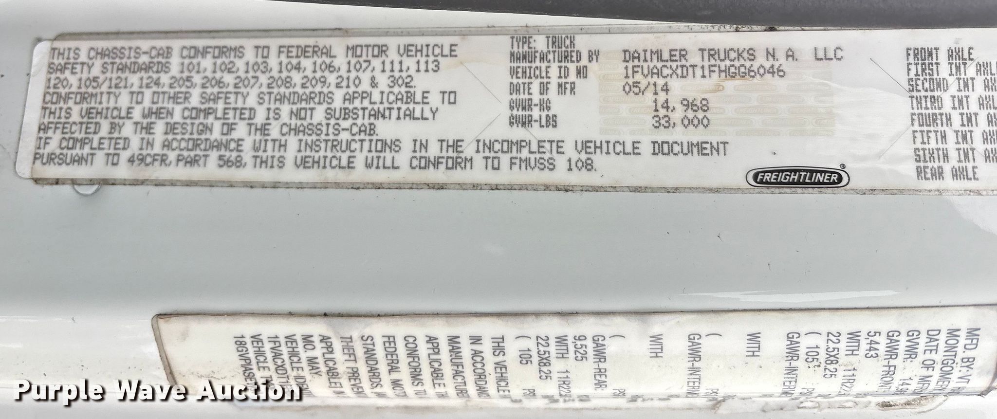 Purple Wave is selling a used Refrigerated Truck in Ohio. This item is a 2015 Freightliner Business Class M2 refrigerated truck with the following: Miles: 259,461 on odometer, Hours: 11,295 on meter, VIN: 1FVACXDT1FHGG6046