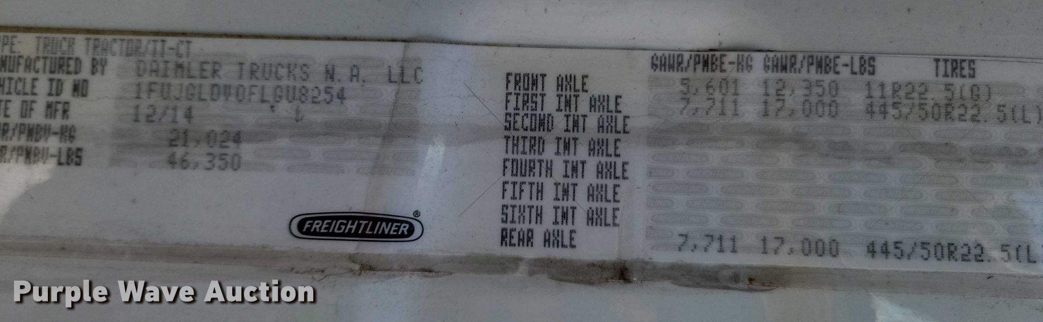 Purple Wave is selling a used Truck Tractor in Iowa. This item is a 2015 Freightliner Cascadia semi truck with the following: Miles: 692,055 on odometer, VIN: 1FUJGLDV0FLGU8254