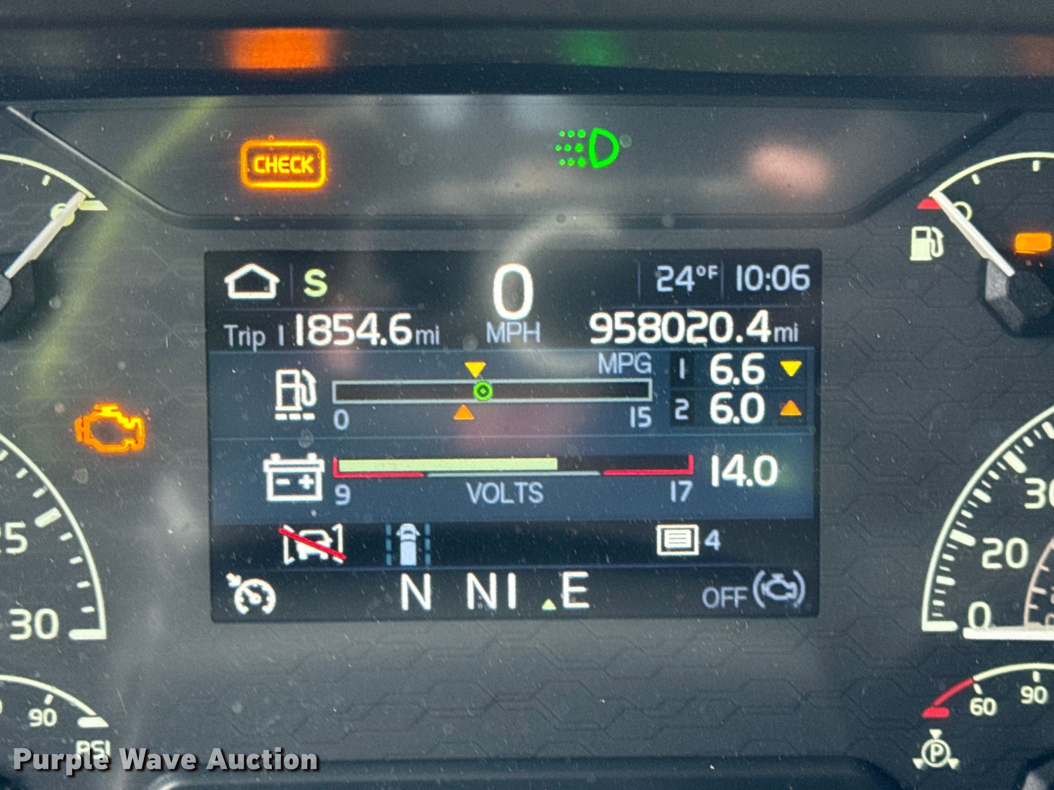 2020 Volvo VNL semi truck. Miles: 958,020 on odometer, Hours: 24,793 on meter, VIN: 4V4NC9EHXLN255878, Unit #: 72374975. Engine Volvo D13, Displacement: 12.8L, Cylinders: 6, Fuel type: Diesel, HP: 425, Engine brake. Transmission Automated manual. Chassis Axles: Tandem, Differential lock: Inter-axle, Suspension: Air Dump valves, Brakes: Air, GVWR: 50,350 lbs FAWR: 12,350 lbs, IAWR: 19,000 lbs, RAWR: 19,000 lbs. Interior AC, Heat, Heated mirrors, Power windows, Cruise control, Air ride cab, Sleeper Sleeper length: 72", Beds: Double bunk, Refrigerator, Microwave, Rear climate control. Features Deck plate: Aluminum, Fifth wheel type: Fixed, Fuel tank: Dual. Tires Size: 295/75R22.5. Notes Dash warning indicator: Check engine, Windshield chipped or cracked. Repossessed item, stored at a secured facility. Please review REQUIRED REMOVAL INSTRUCTIONS. Titles will be distributed after confirmation of payment and removal. Illinois title. Title distribution may be delayed up to 30 days from verification of funds. Lender Owned. 31W 120 W Bartlett Road. Bartlett, IL 60103