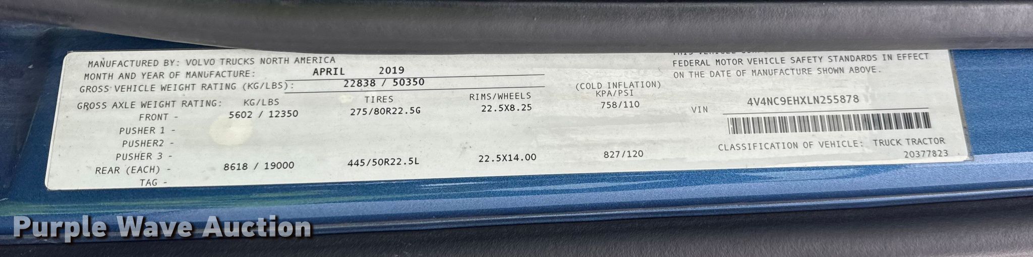 Purple Wave is selling a used Truck Tractor in Illinois. This item is a 2020 Volvo VNL semi truck with the following: Miles: 958,020 on odometer, Hours: 24,793 on meter, VIN: 4V4NC9EHXLN255878, Unit #: 72374975