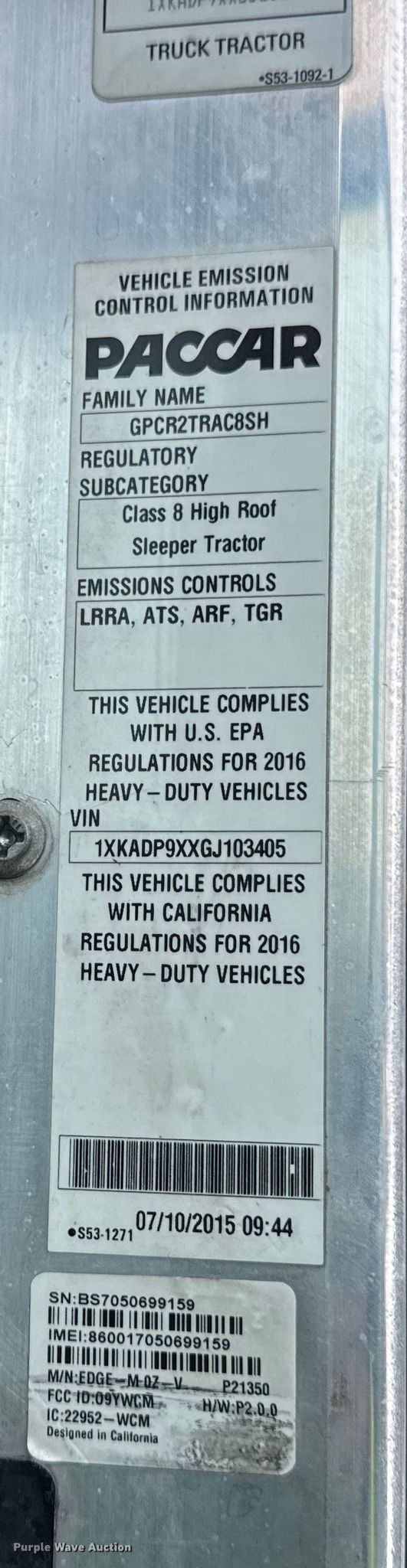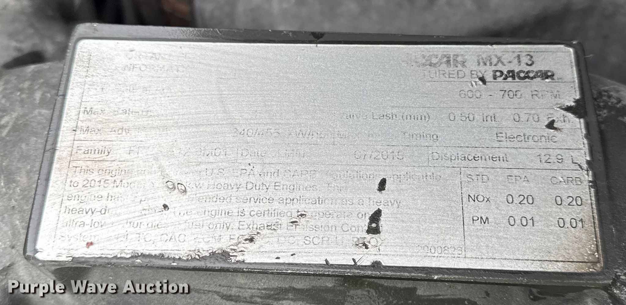 2016 Kenworth T660 semi truck. Miles: 806,958 on odometer, Hours: 19,570 on meter, VIN: 1XKADP9XXGJ103405, Unit #: 95116155. Engine Paccar MX-13, Displacement: 12.9L, Cylinders: 6, Fuel type: Diesel, HP: 476, Engine brake. Transmission Automatic. Chassis Axles: Tandem, Differential lock: Inter-axle, Suspension: Air Dump valves, Brakes: Air, GVWR: 50,000 lbs FAWR: 12,000 lbs, IAWR: 19,000 lbs, RAWR: 19,000 lbs. Interior AC, Heat, Heated mirrors, Cruise control, Air ride cab, Sleeper Sleeper length: 72", Beds: Single, Refrigerator, Rear climate control, Auxiliary power unit Thermo King, Engine Yanmar.. Features Deck plate: Aluminum, Fifth wheel type: Air operated, Sliding, Fuel tank: Dual. Tires Size: 295/75R22.5. Notes Dash warning indicator: Check engine, Coolant, Windshield chipped or cracked, Jump start required during on-site data collection, Non-operational auxiliary power unit. Repossessed item, stored at a secured facility. Please review REQUIRED REMOVAL INSTRUCTIONS. Titles will be distributed after confirmation of payment and removal. Pennsylvania title. Title distribution may be delayed up to 30 days from verification of funds. Lender Owned. 31W 120 W Bartlett Road. Bartlett, IL 60103