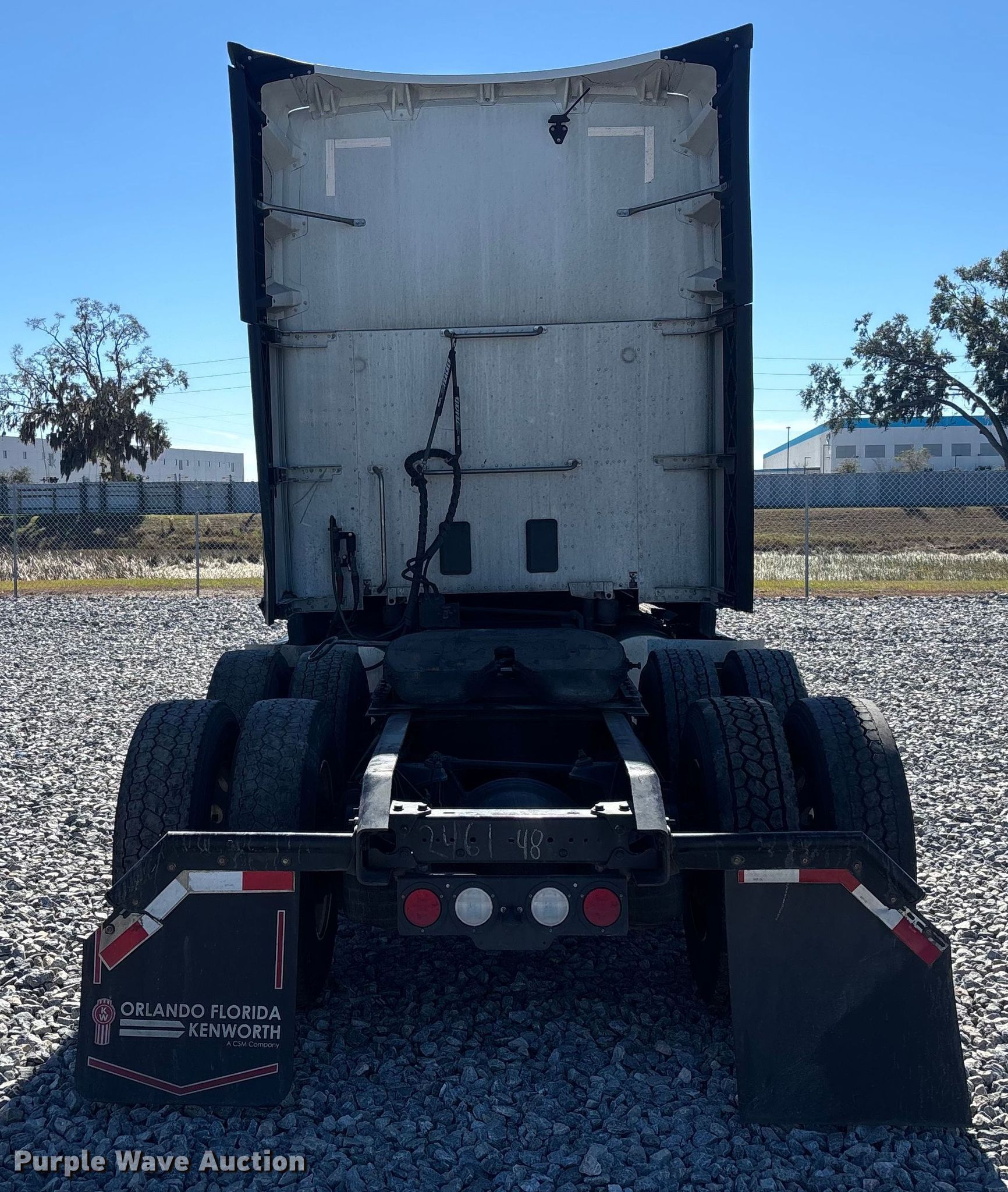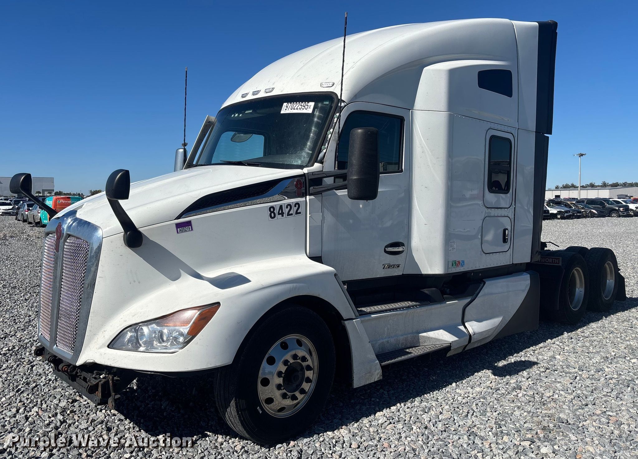 2023 Kenworth T680 semi truck. Miles: 629,744 on odometer, Hours: 17,555 on meter, VIN: 1XKYDP9X9PJ246148, Unit #: 97022595. Engine Paccar MX-13, Displacement: 12.9L, Cylinders: 6, Fuel type: Diesel, Engine brake. Transmission Automated manual. Chassis Axles: Tandem, Differential lock: Inter-axle, Suspension: Air Dump valves, Brakes: Air, GVWR: 52,350 lbs FAWR: 12,350 lbs, IAWR: 20,000 lbs, RAWR: 20,000 lbs. Interior AC, Heat, Heated mirrors, Power windows, Power locks, Cruise control, Air ride cab, Brake controller, Sleeper Sleeper length: 72", Beds: Double bunk, Refrigerator, Rear climate control. Features Deck plate: Aluminum, Fifth wheel type: Air operated, Sliding, Fuel tank: Dual. Tires Size: 295/75R22.5. Notes Windshield chipped or cracked. Repossessed item, stored at a secured facility. Please review REQUIRED REMOVAL INSTRUCTIONS. Titles will be distributed after confirmation of payment and removal. West Virginia title. Title distribution may be delayed up to 30 days from verification of funds. Lender Owned. 3352 West Orange Blossom Trail. Apopka, FL 32703