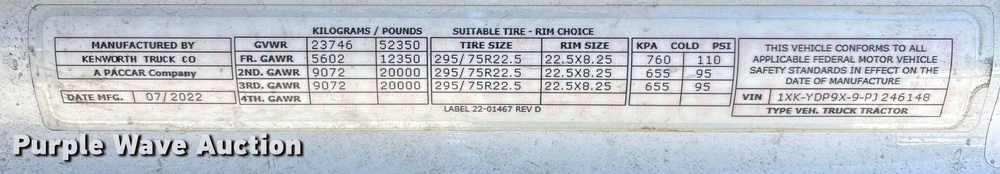 - VIN: 1XKYDP9X9PJ246148