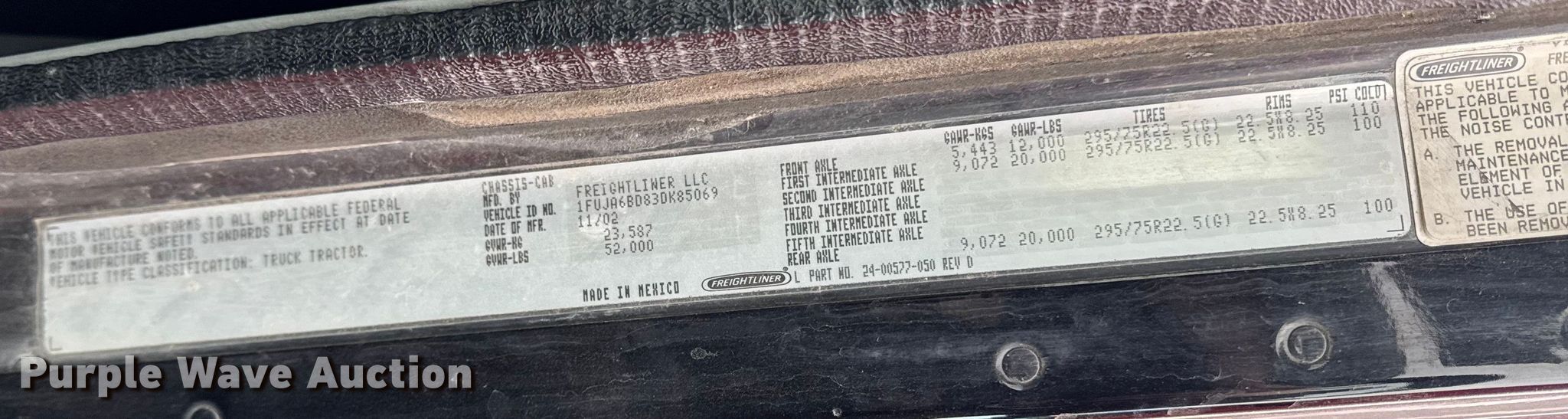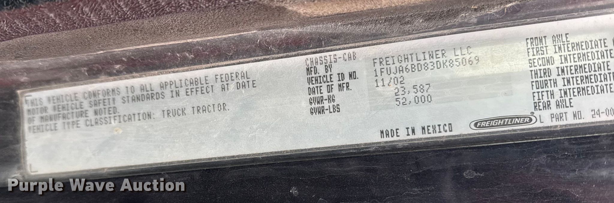 Purple Wave is selling a used Truck Tractor in Iowa. This item is a 2003 Freightliner Columbia semi truck with the following: Miles: Unknown, VIN: 1FUJA6BD83DK85069, Unit #: 72540915