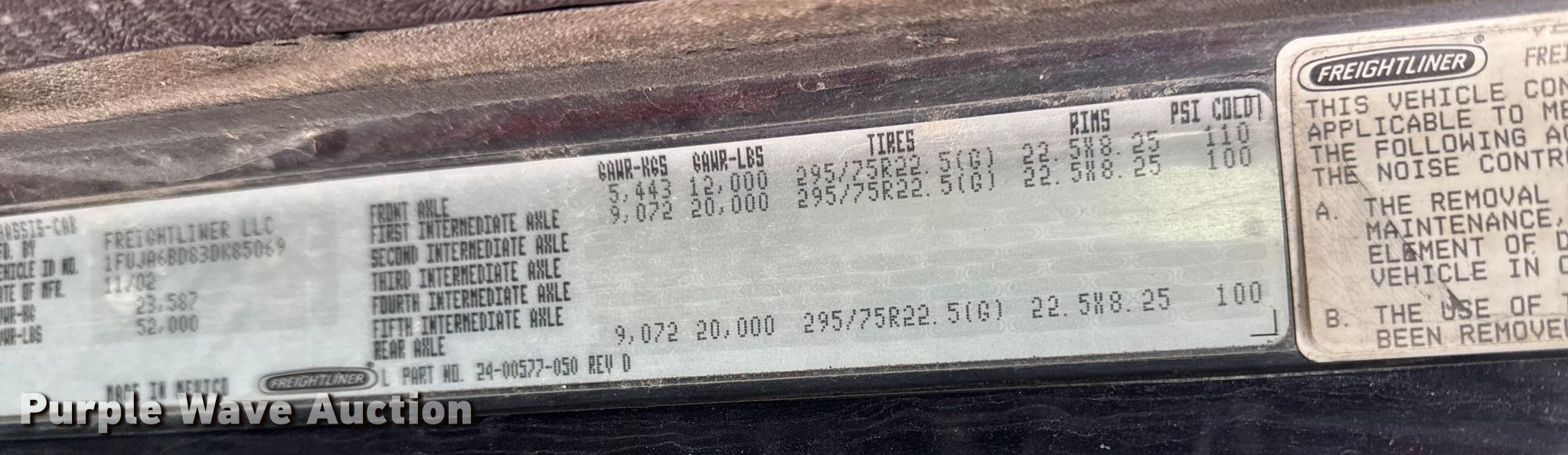 - VIN: 1FUJA6BD83DK85069