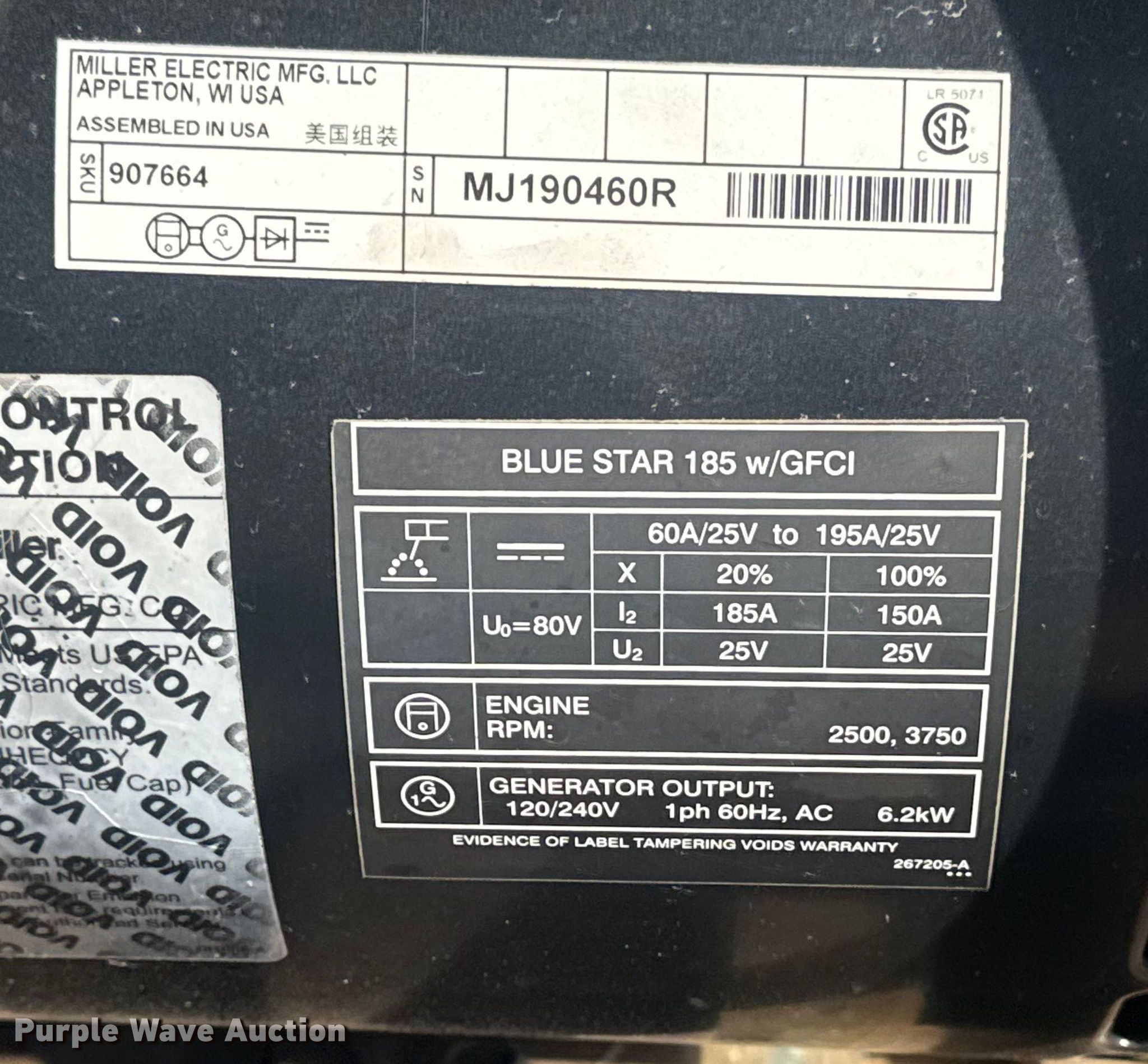 Purple Wave is selling a used Welder (Manual) in Oklahoma. This item is a Miller Blue Star 185 welder with the following: Hours: 28 on meter