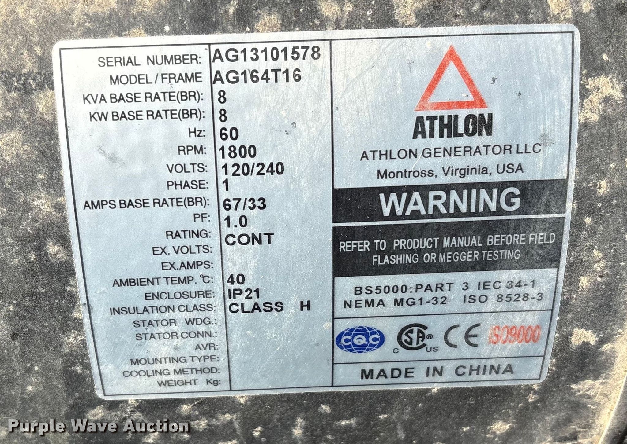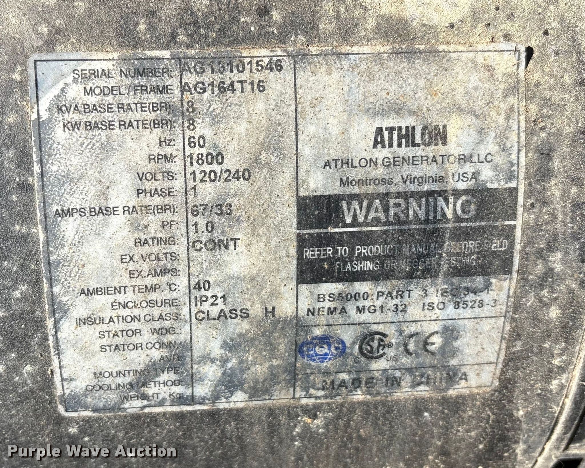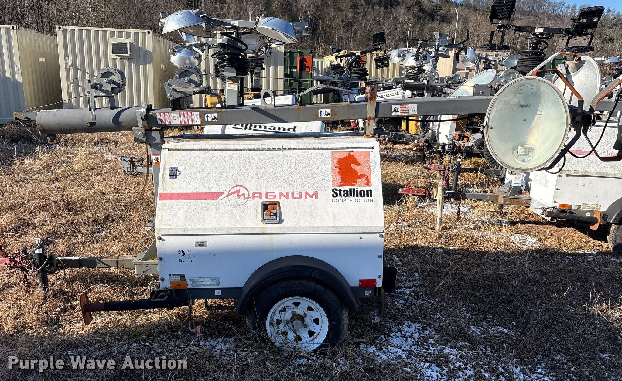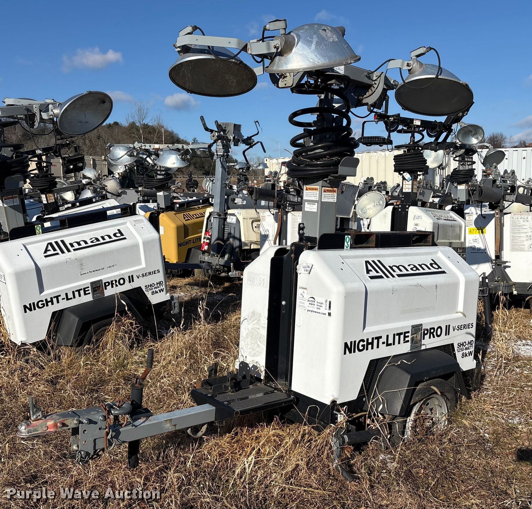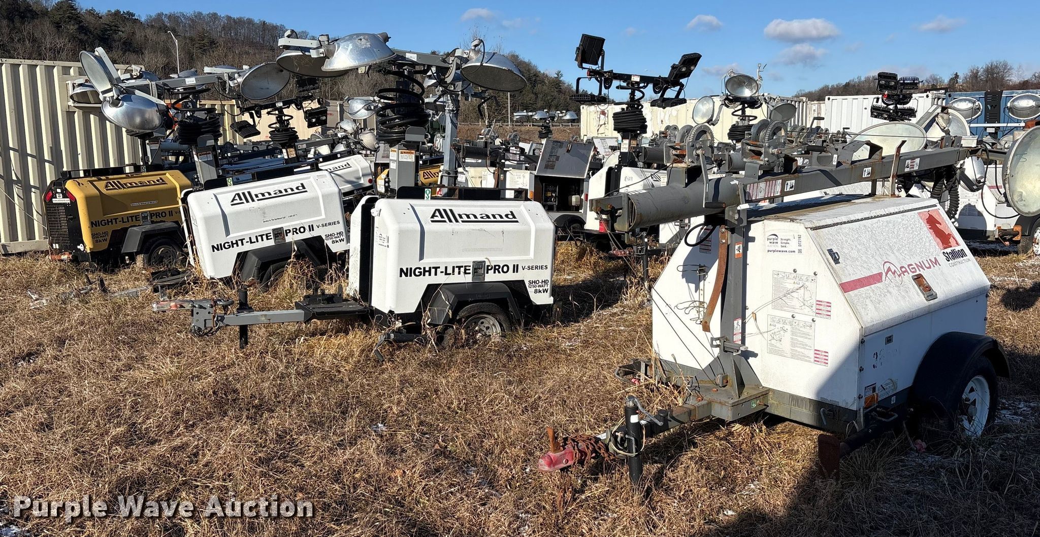 (4) light plants. Unit #: 38666, 48151, 48153, 48163. Magnum Power light plant Hours: 17,611, Serial: 5AJLS1617CB004147. Engine KW: 6 Phase: Single, Fuel type: Diesel, Cylinders: 3. Features Kubota D1005 generator Pancake, Light Plant Bulbs: 4, Hoist: Power. Trailer Axles: Single Suspension: Spring, GVWR: 1,910. Tires Size: 175/80D13. (3) Allmand Bros Night-Lite Pro II light plants Serials: 1765PR02V14, 1768PR02V14, 0547PRO2V14. Engine Kubota D1105, Cylinders: 3, Fuel type: Diesel. Features Athlon generator Phase: single, KW: 8. Trailer Axles: Single, Suspension: Spring. Tires Tire size: 175/80D13. Notes Unknown operating condition. This is worksite support equipment and will not come with a title. Transfer of ownership documentation will be a bill of sale. Stallion Infrastructure Services. Williamsport, PA 17701