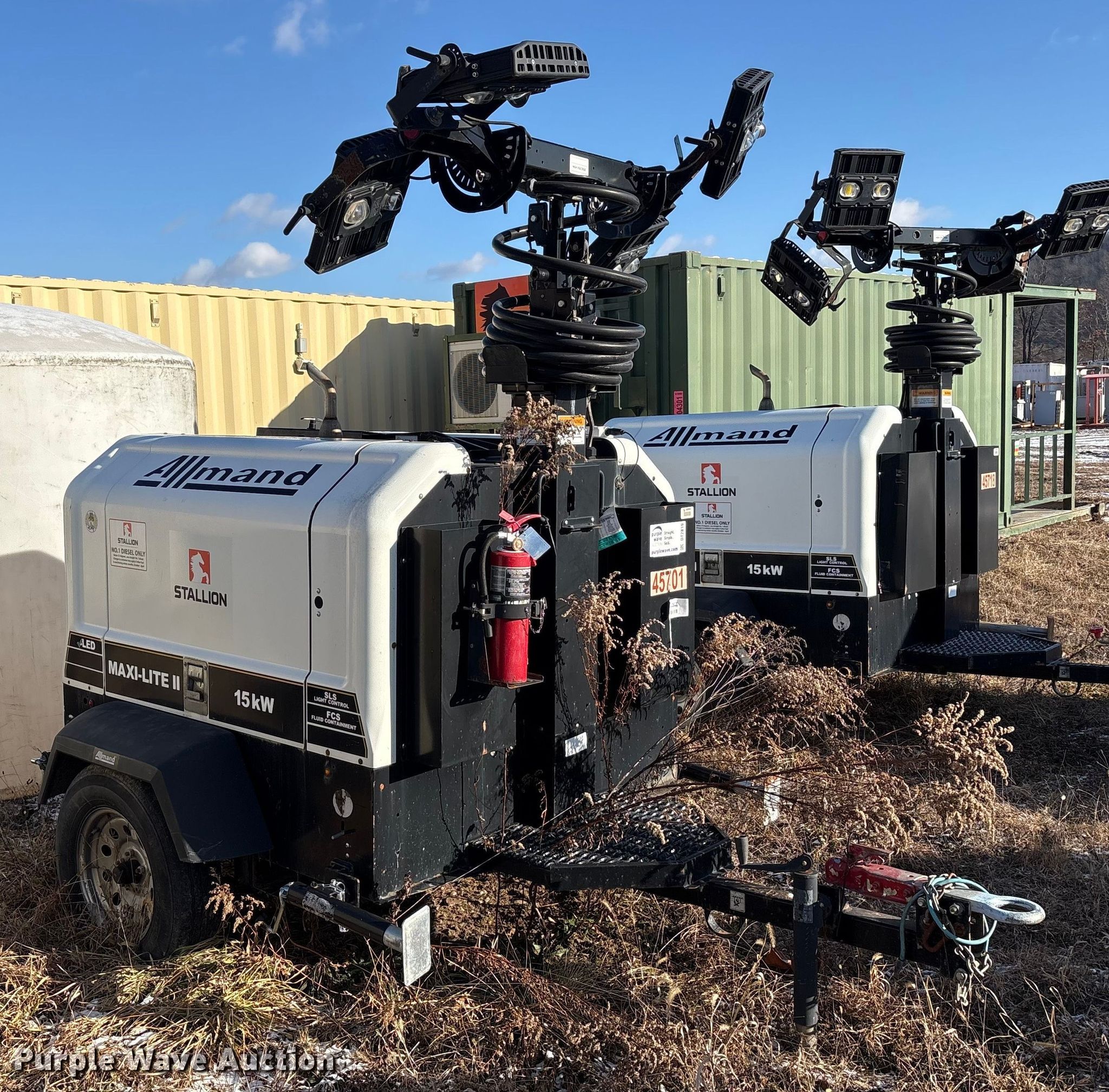 Purple Wave is selling a used Light Plant in Pennsylvania. This item is a (2) Allmand Bros Maxi-Lite 2 V light plants with the following: VIN:, 5AEA1HB19JH000084, 5AEA1HB15JH000163, Unit #: 45701, 45903