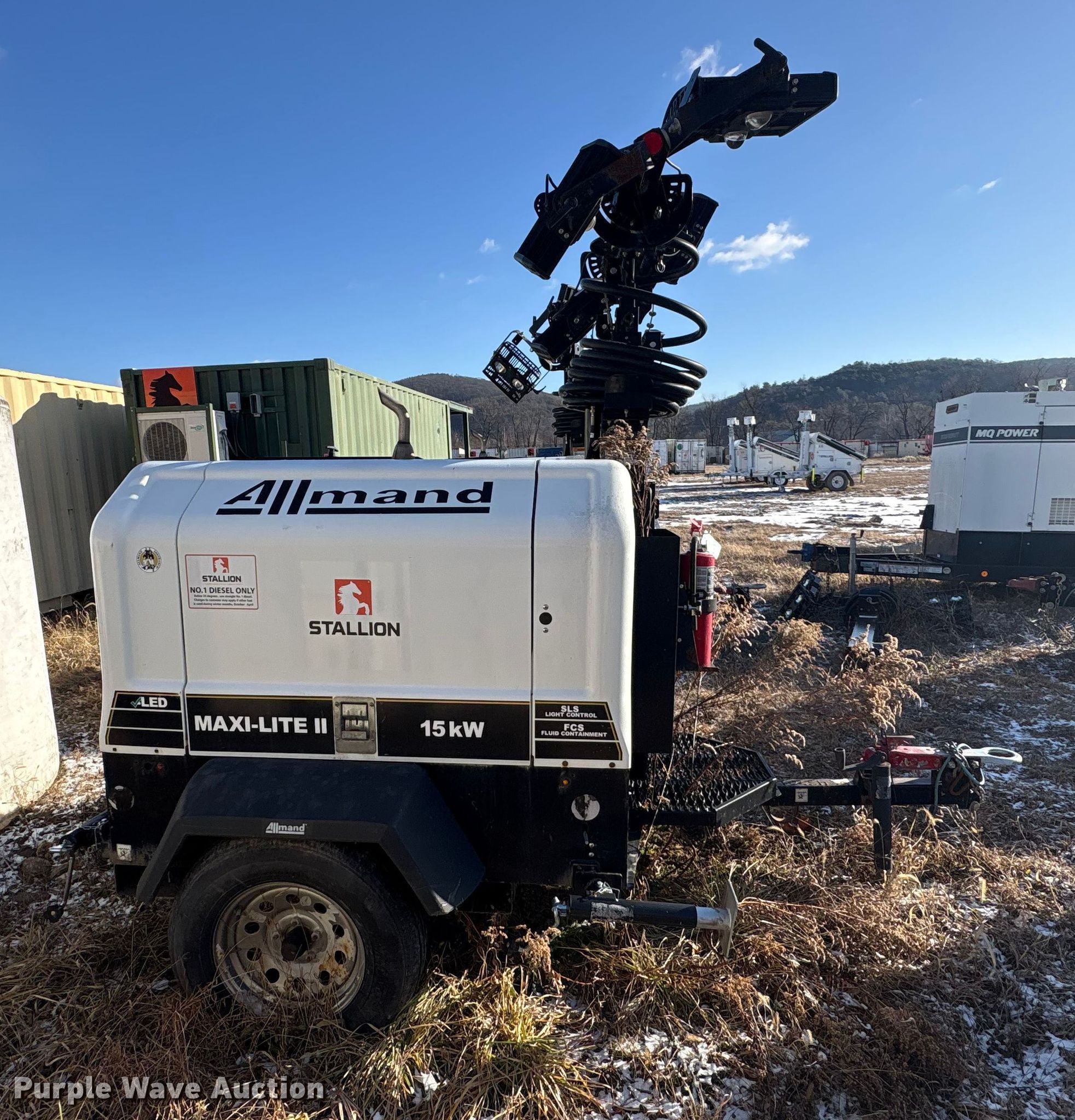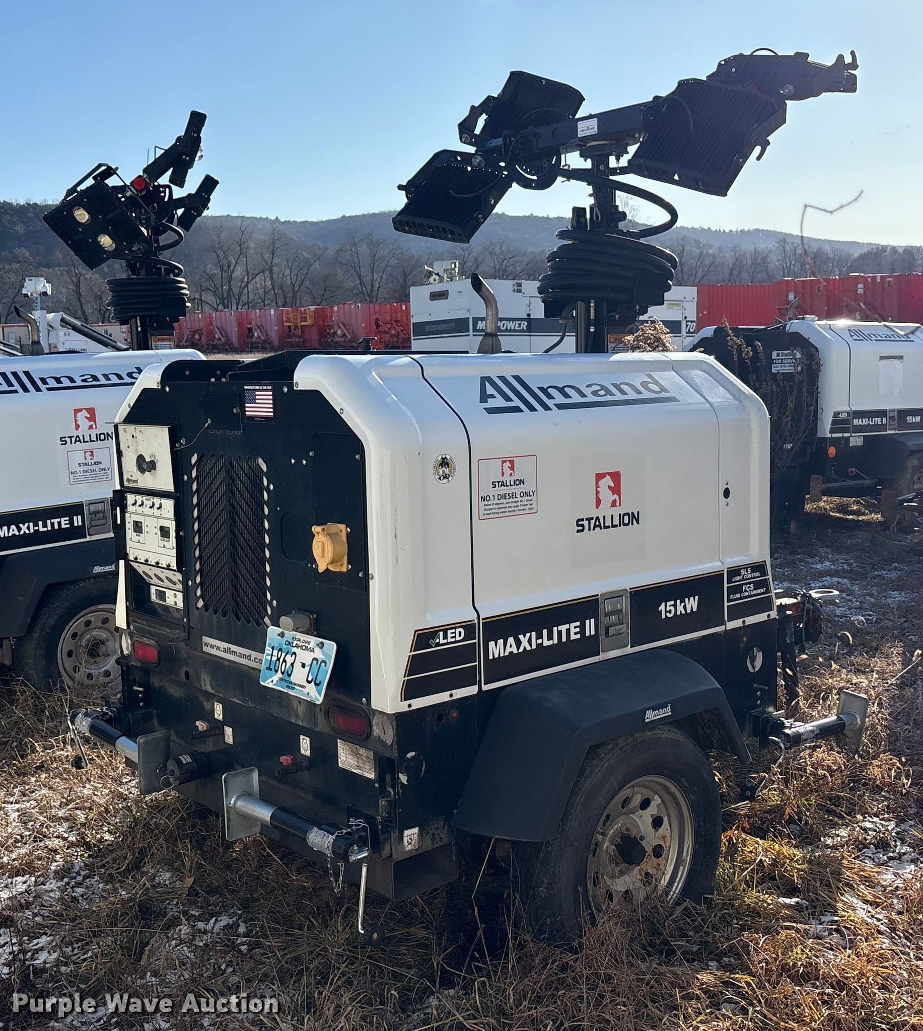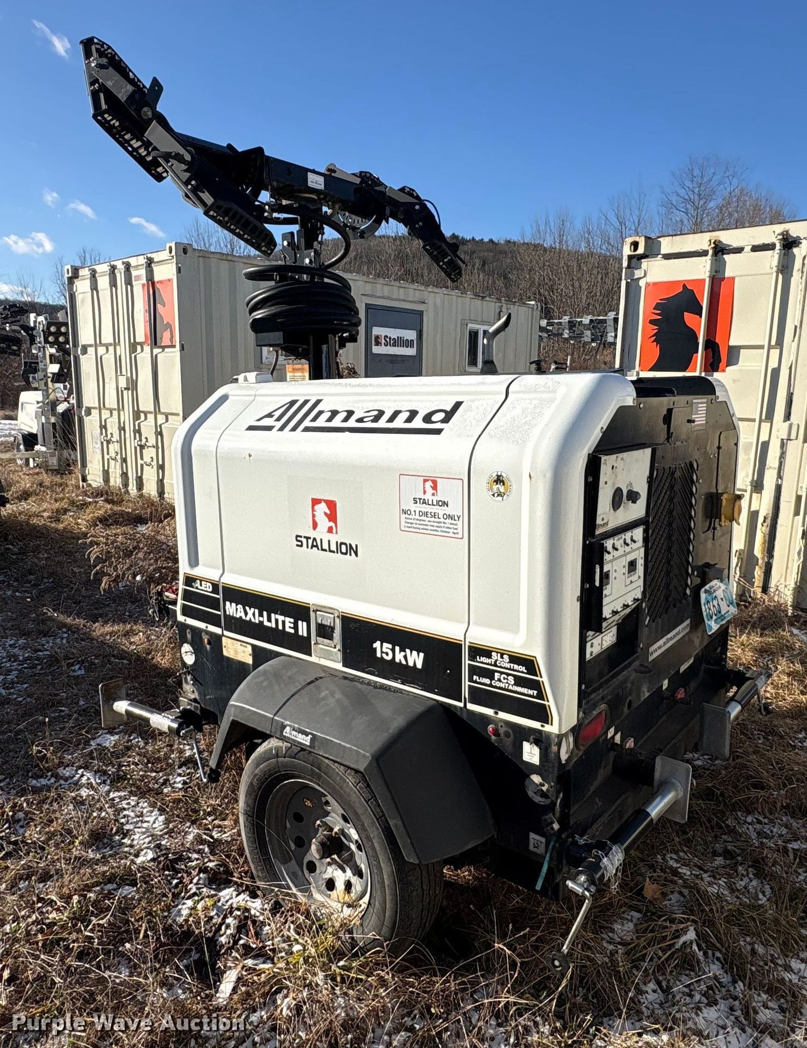 (2) Allmand Bros Maxi-Lite 2 V light plants. VIN: 5AEA1HB19JH000084, 5AEA1HB15JH000163, Unit #: 45701, 45903. Engine Cylinders: 3, Fuel type: Diesel. Features Generator Phase: Single, Electric start, Fuel tank, Light plant Bulbs: 4, Hoist: Power, Stabilizers. Trailer Hitch: Pintle, Suspension: Spring, Axles: Single, Tire size: 205/75R15, GVWR: 4,300 lbs. Notes Non-operational unit. This is worksite support equipment and will not come with a title. Transfer of ownership documentation will be a bill of sale. Stallion Infrastructure Services. Williamsport, PA 17701