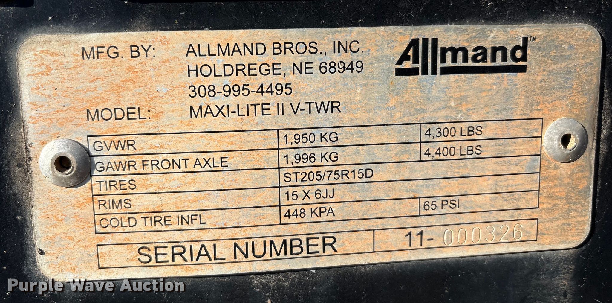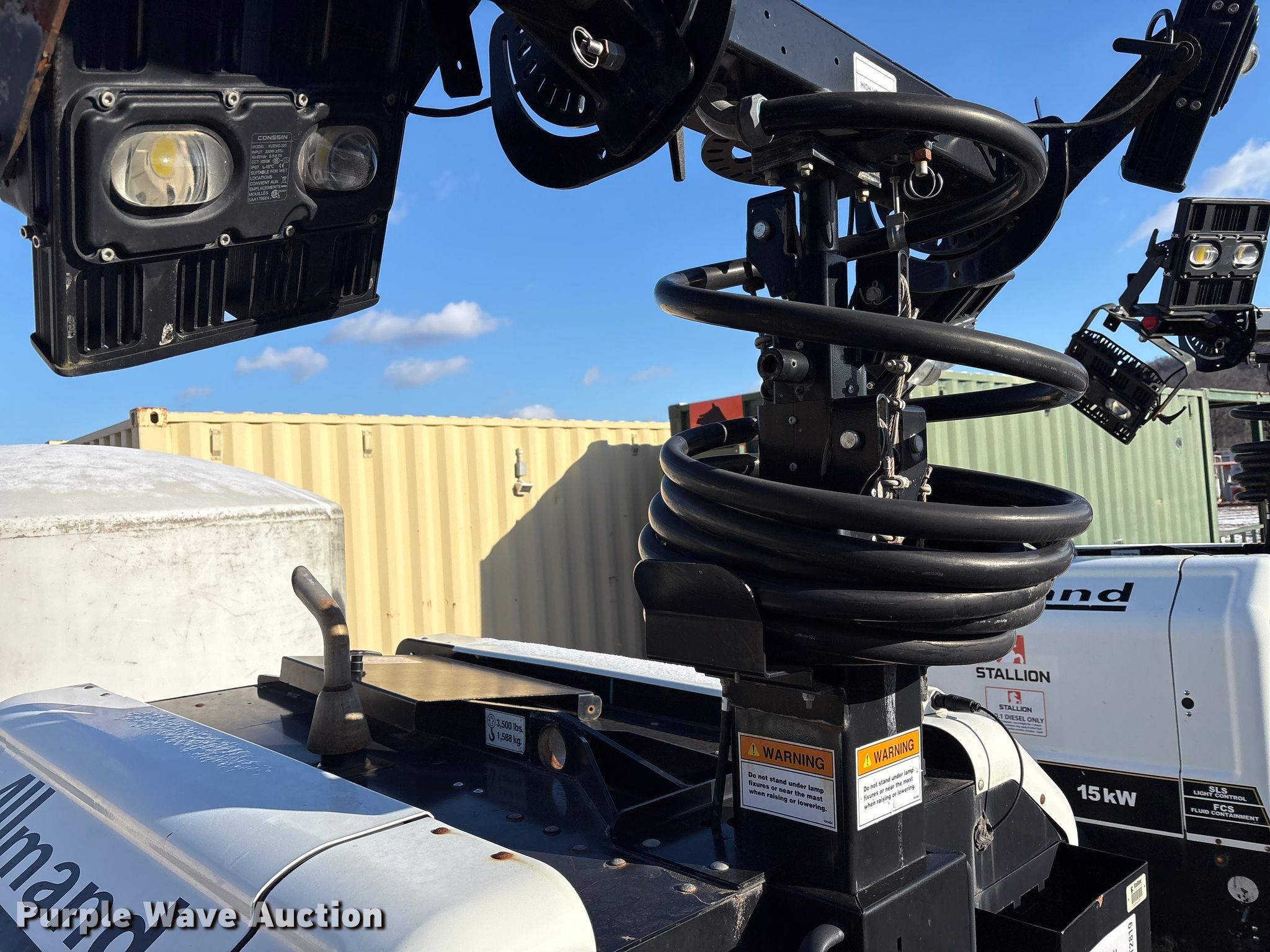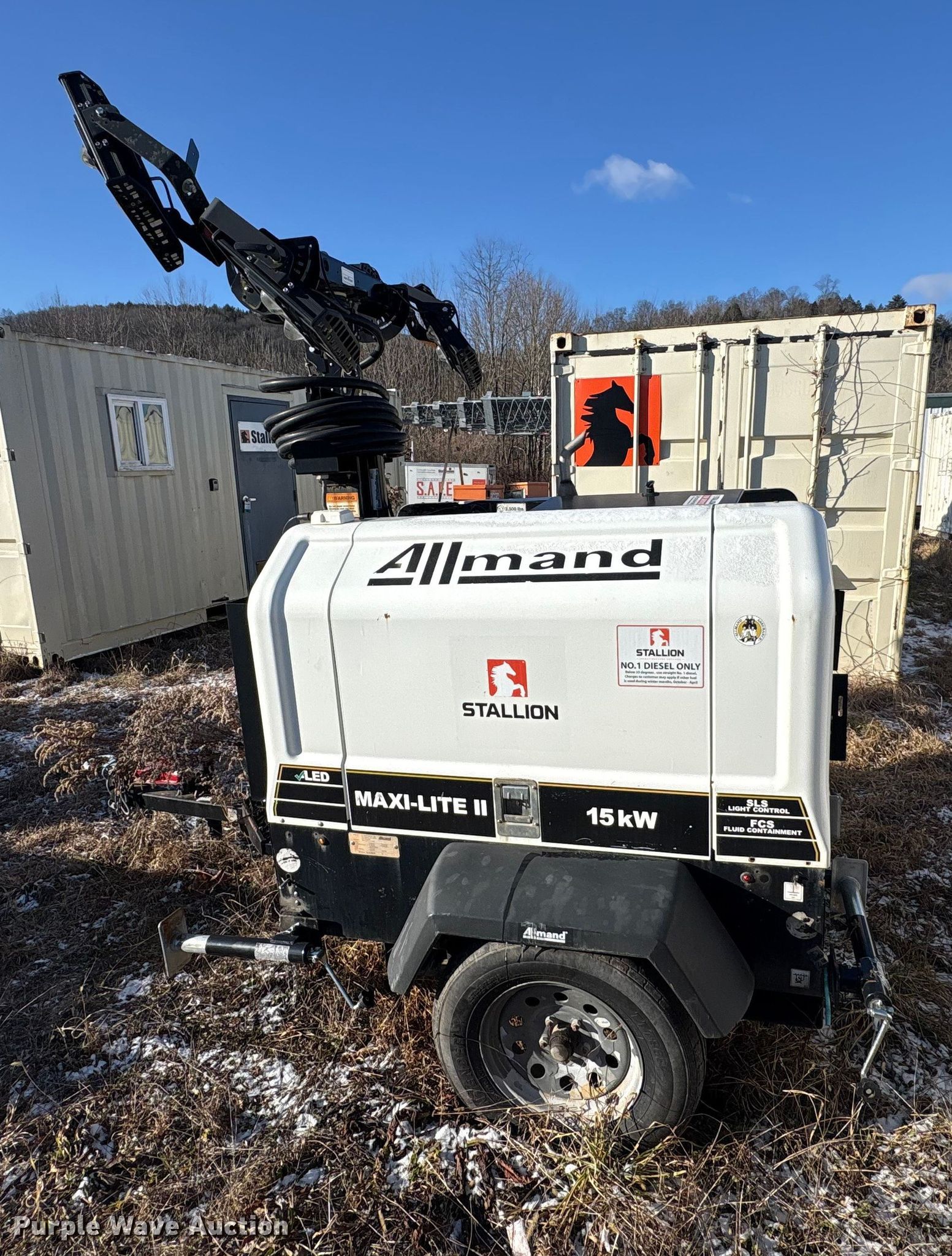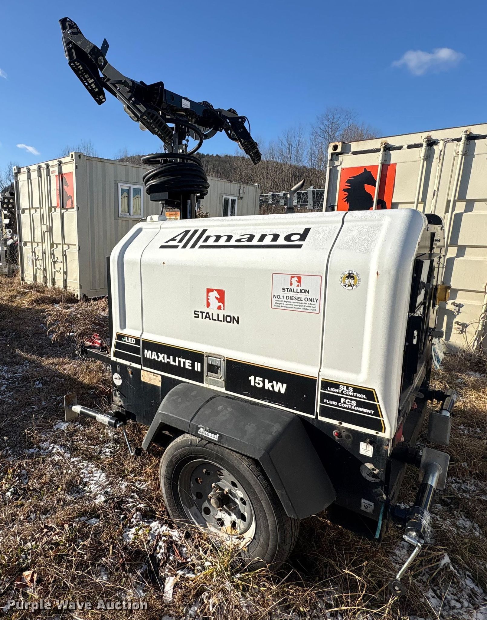 (2) Allmand Bros Maxi-Lite 2 V light plants. VIN: 5AEA1HB19JH000084, 5AEA1HB15JH000163, Unit #: 45701, 45903. Engine Cylinders: 3, Fuel type: Diesel. Features Generator Phase: Single, Electric start, Fuel tank, Light plant Bulbs: 4, Hoist: Power, Stabilizers. Trailer Hitch: Pintle, Suspension: Spring, Axles: Single, Tire size: 205/75R15, GVWR: 4,300 lbs. Notes Non-operational unit. This is worksite support equipment and will not come with a title. Transfer of ownership documentation will be a bill of sale. Stallion Infrastructure Services. Williamsport, PA 17701