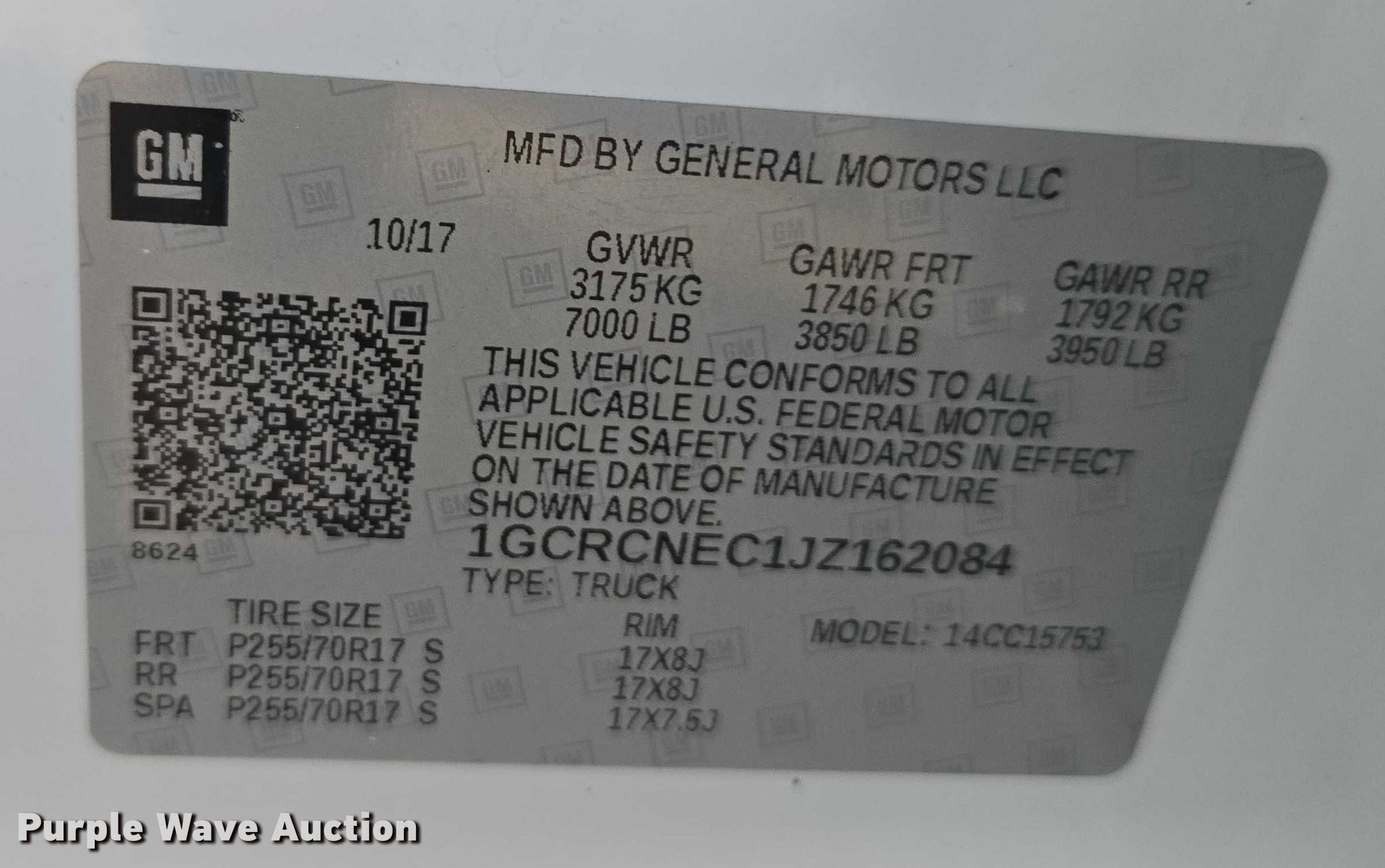 - VIN: 1GCRCNEC1JZ162084