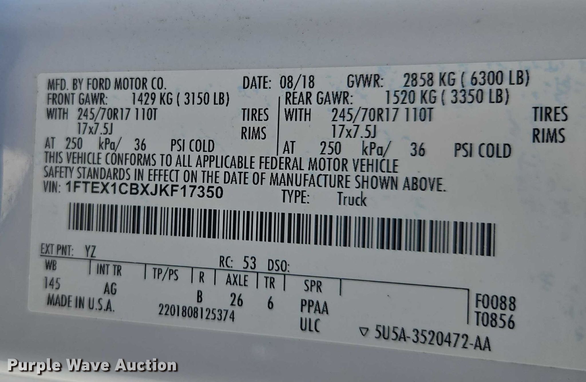 - VIN: 1FTEX1CBXJKF17350