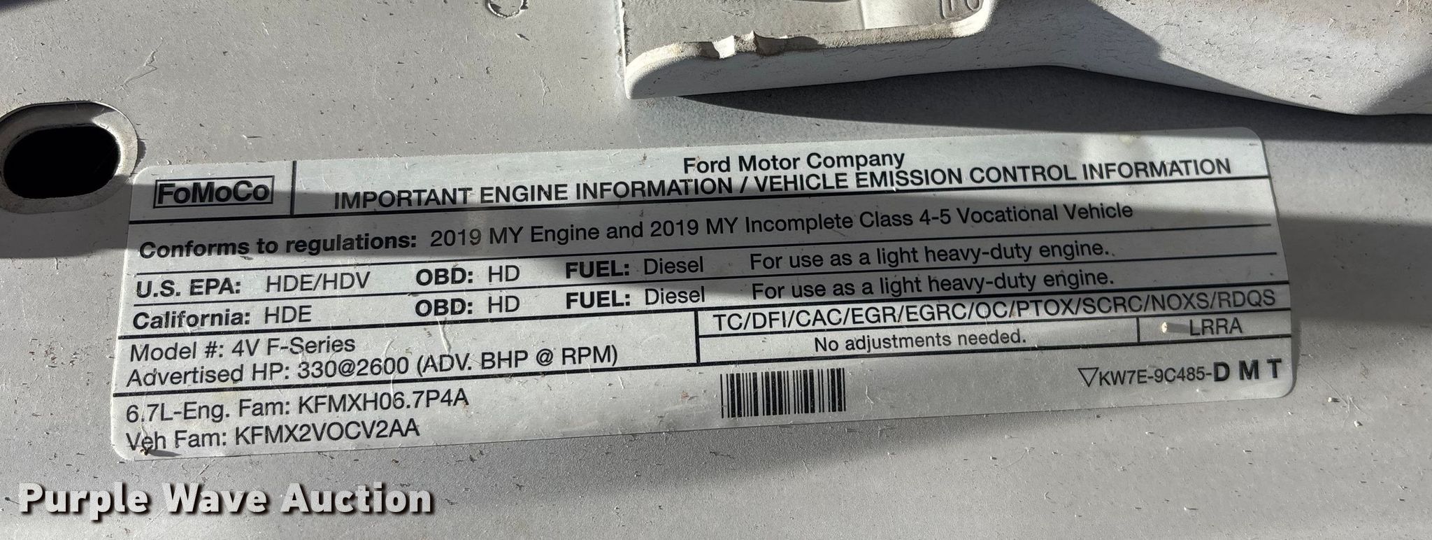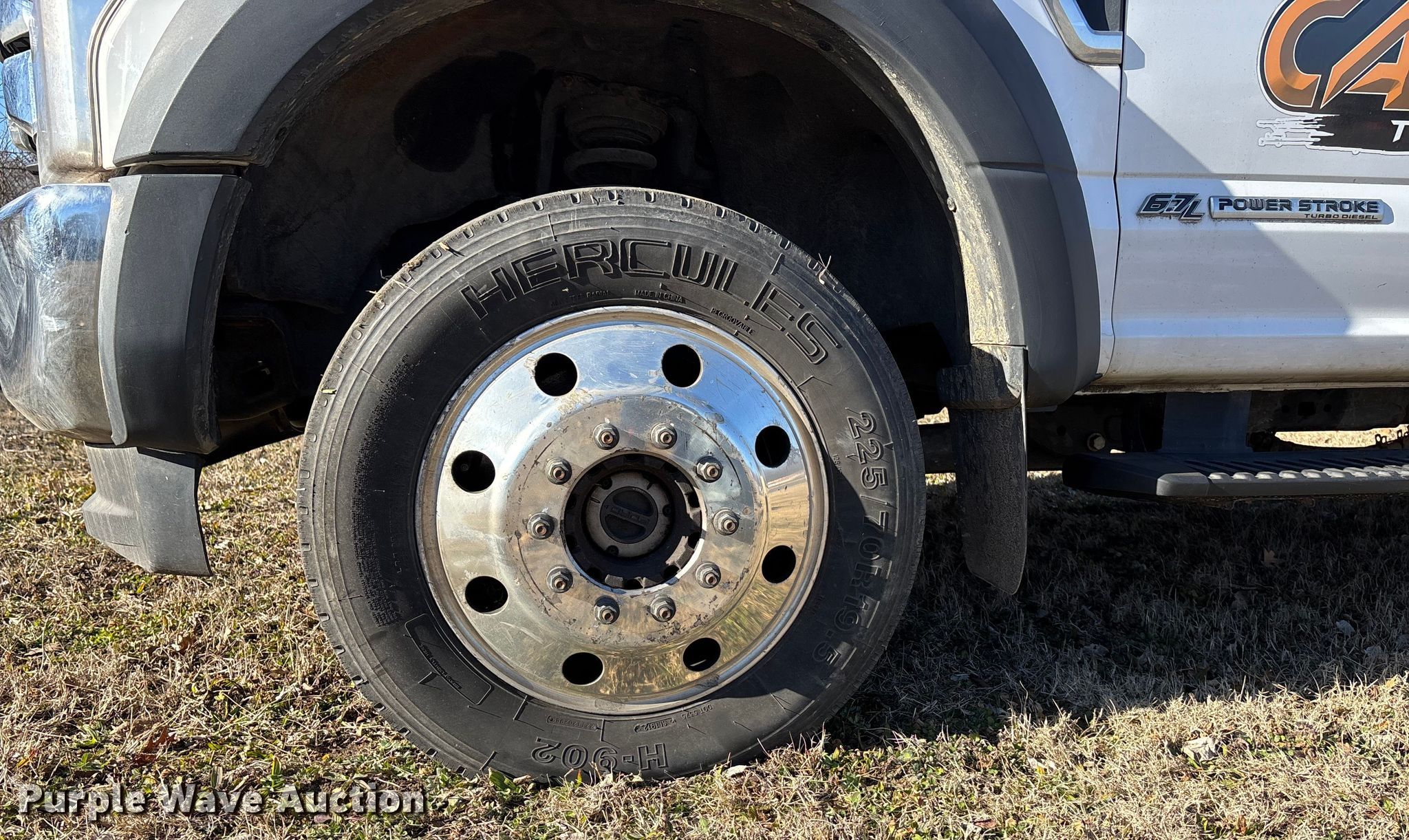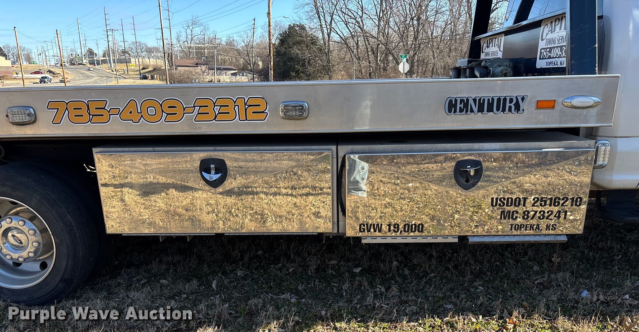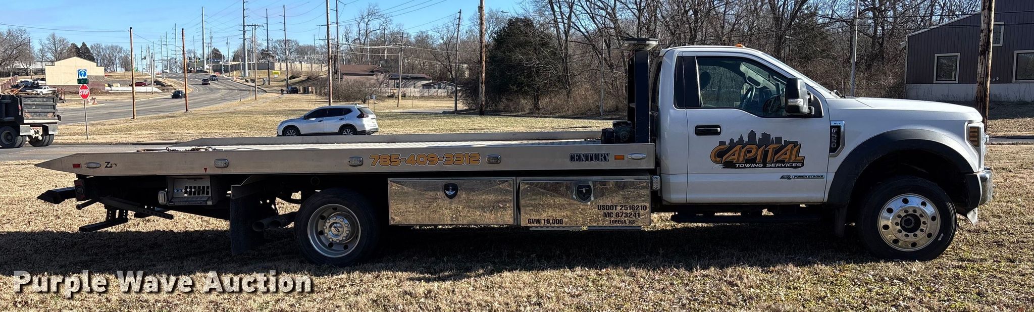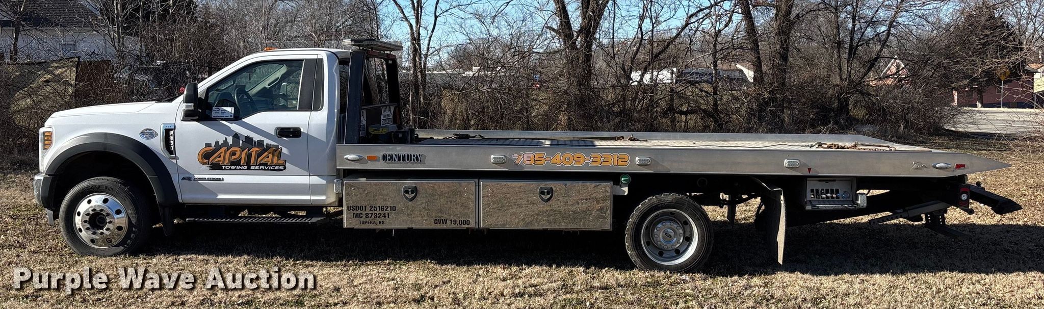 2019 Ford F550 Super Duty rollback truck. Miles: 202,447 on odometer, VIN: 1FDUF5HT3KEE42252. Engine Displacement: 6.7L, Cylinders: 8, Fuel type: Diesel, HP: 440. Transmission Automatic. Chassis Four wheel drive, Axles: Single, Suspension: Spring, Brakes: Hydraulic, PTO, Wet kit, GVWR: 19,500 lbs. Interior AC, Heat, Heated mirrors, Power windows, Power locks, Cruise control, Backup camera, Auxiliary controls, Brake controller. Features Bed Rollback bed, Miller Century, Serial: 195C1080285411 I 19, Length: 19' 6", Width: 96", Ram: Dual, Wrecker boom: Hydraulic, Hydraulic extendable, Winch Capacity: 8,000 lbs.. Tires Size: 225/70R19.5. Notes Dash warning indicator: Check engine. Kansas title. Title distribution may be delayed up to 14 days from verification of funds. Capital Towing services. Topeka, KS 66607
